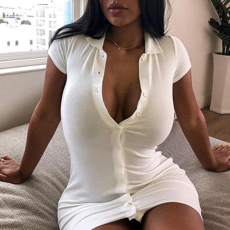 * Описание товара: женское платье модное однотонное тонкое сексуальное мини-платье с короткими рукавами и пряжкой