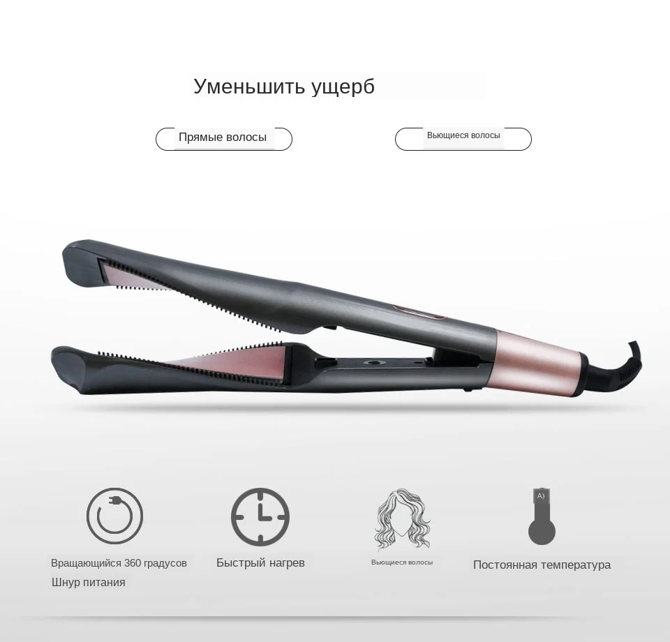 Описание товара: Модель: 606 Вес: 650 г Размер: 33*10*6 Напряжение: 100-240 В Частота: 50/60 Гц Мощность: 30 Вт Длина провода: 2,4 м Вращающийся на 360 градусов провод Температура: 80-230 Цельсия Характеристики Товара: Температура салона до 470 по Фаренгейту Быстрый нагрев Керамика для гладкого дизайна и высокого блеска Вращающийся на 360 градусов шнур Нагревательный элемент PTC Светодиодный индикатор светильник Специальный круглый дизайн: закругленные пластины для прямой или волнистой прически Я пошлю вилку, которая подходит для вашей страны. Пожалуйста, не волнуйтесь. О продукте 【2 в 1 выпрямитель для волос и щипцы для завивки 】 выпрямитель для волос может использоваться как выпрямитель или как щипцы для завивки волос. Они могут удовлетворить все ваши потребности и иметь различные температурные настройки (100 ℃-230 ℃) для всех типов волос. 【Уникальный дизайн 】 по сравнению с другими выпрямителями для волос, уникальный дизайн изогнутых и пружинных стильных пластин нашего выпрямителя Для Волос повышает скорость завивки в два раза. И дизайн керамического покрытия мягче на кутикуле и не дает волосам улететь из-за пульсирования и зубчатого зуба. 【Сразу же нагревается и автоматическое отключение питания 】 он быстро нагревается за 15 секунд и переменные настройки тепла идеально подходят для достижения желаемого стиля. Сэкономит ваше время. Автоматическое отключение через 60 минут. Благодаря функции Smart Memory выпрямитель Curl & Straight Confidence сохраняет последние Выбранные настройки и автоматически извлекает их в следующем приложении. 【Жк-дисплей и регулируемая температура 】 бигуди с цифровым дисплеем и Температура варьируется от 100 ° C до 230 ° C. всего одна кнопка для достижения желаемой температуры от 100 °C до 230 °C. подходит для всех типов волос. 【Упаковка и гарантия на 100% года】 в дополнение к выпрямителю для волос, есть термостойкая Защитная крышка и высококачественная термостойкая перчатка, с помощью которой вы можете укладывать волосы идеально. Посылка: 1 * выпрямитель для волос 1 * Руководство по использованию 1 * стойкий glovev Клиент Отзывы: