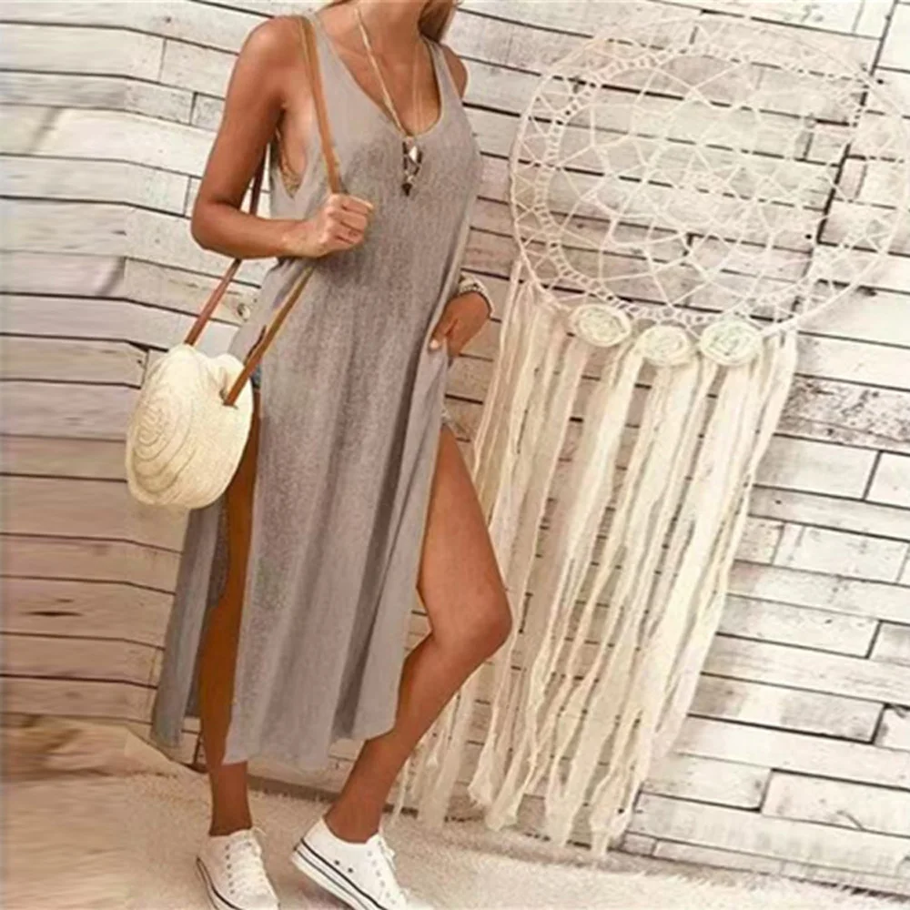 * Описание товара: Ретро, круглый вырез, без рукавов, раскол, свободный