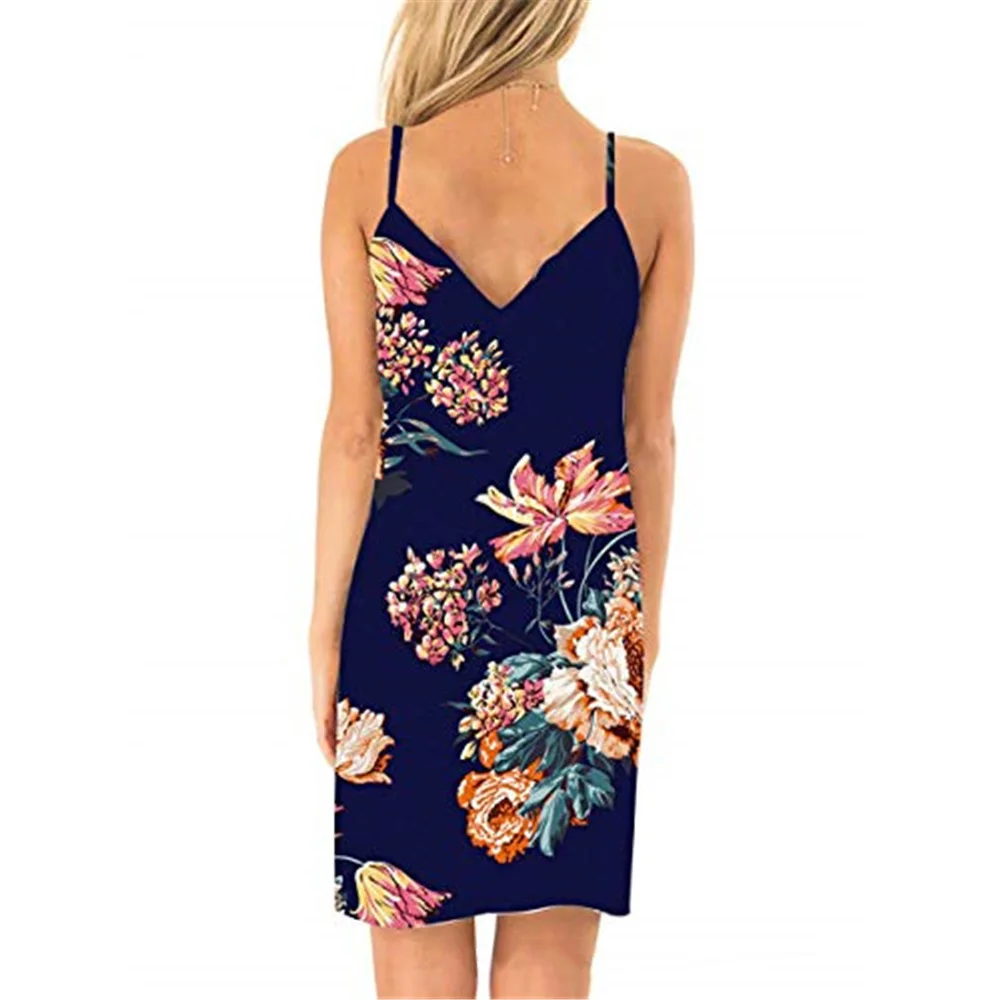 * Описание товара: женское летнее платье с цветочным принтом без рукавов с v-образным вырезом, свободное повседневное модное платье
