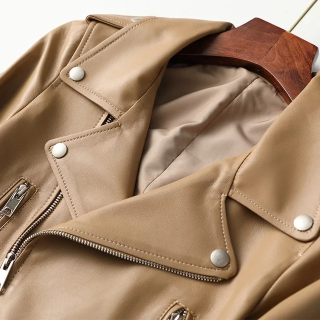 Женская куртка из натуральной овечьей кожи, пальто из 100% натуральной овечьей кожи, женские мотоциклетные топы, женская верхняя одежда размера плюс