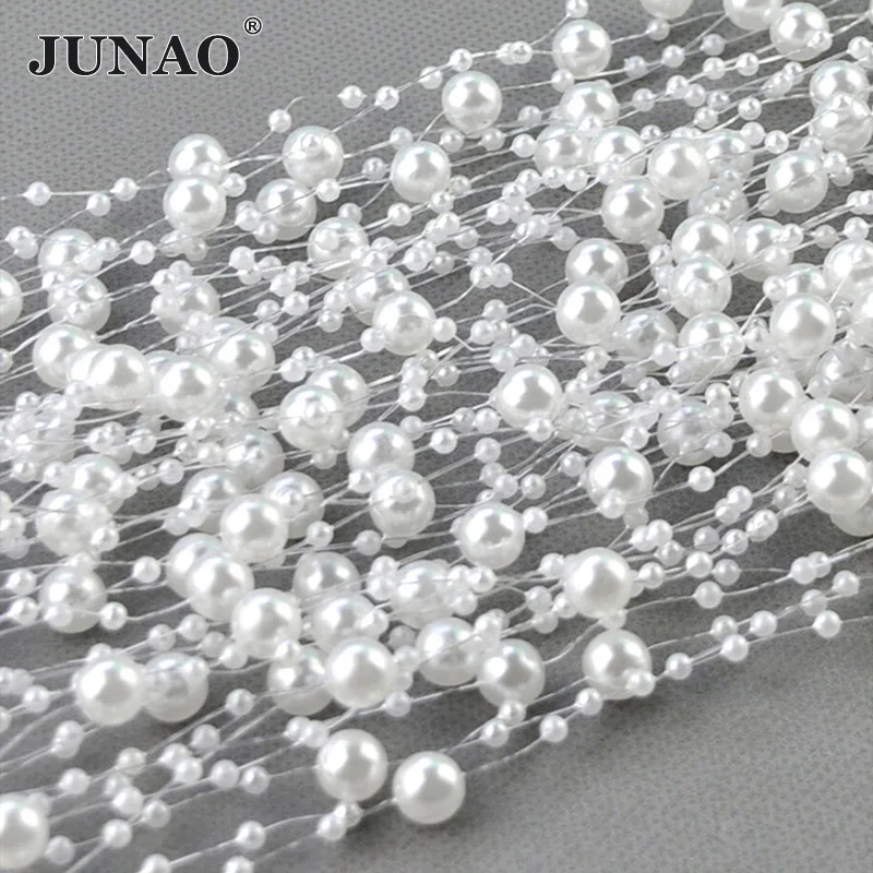 JUNAO 20 метров 3 + 8 мм белый жемчуг со стразами лента акриловая Свадебная