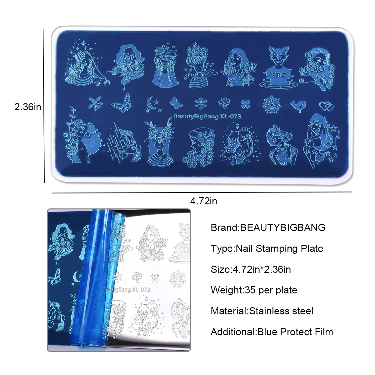 Размер: прибл. 6*12 смПосылка:1 шт. BeautyBigBang пластина для стемпинга для нейл-артаИнструкции:Пластина защищена тонкой прозрачной защитной пленкой, пожалуйста, Снимите пленку перед использованием, чтобы лак для ногтей мог быть передан stamper.1. Нанесите базовый слой или обычный лак на ноготь.2. Нанесите лак для ногтей на желаемое изображение в пластине. (Рекомендуется: Используйте однотонный лак для ногтей, чтобы текстура была толще, чем другие лаки для ногтей)3. Сделайте скребок наклоном на 45 градусов и быстро и сильно Отрежьте чрезмерный лак изнутри и снаружи.4. Немедленно нажмите на стемпер с нежным подвижным движением, чтобы подобрать дизайн. Изображение переносится на штамп.5. Наклейте изображение на ноготь с нежным подвижным движением. Изображение переносится на ваш ноготь.6. Повторите вышеуказанные шаги для всех ваших ногтей.7. После штамповки ногтей нанесите верхнее покрытие для длительного ношения.Внимание: