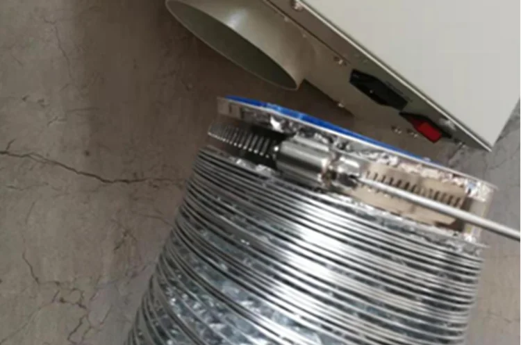 2. Поместите выхлопную трубу на интерфейс продукта, Затяните крепежные винты отверткой и поместите выхлопную трубу на открытом воздухе.