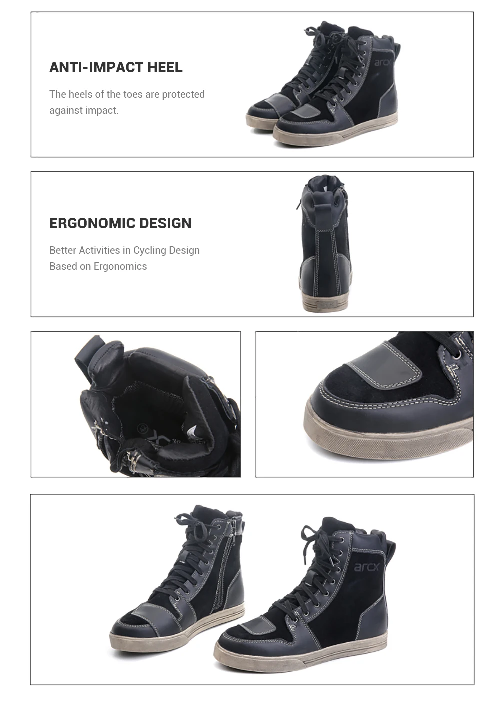 Усиленная защита на носке, пятке и лодыжках, обеспечивает отличную поддержку и безопасность