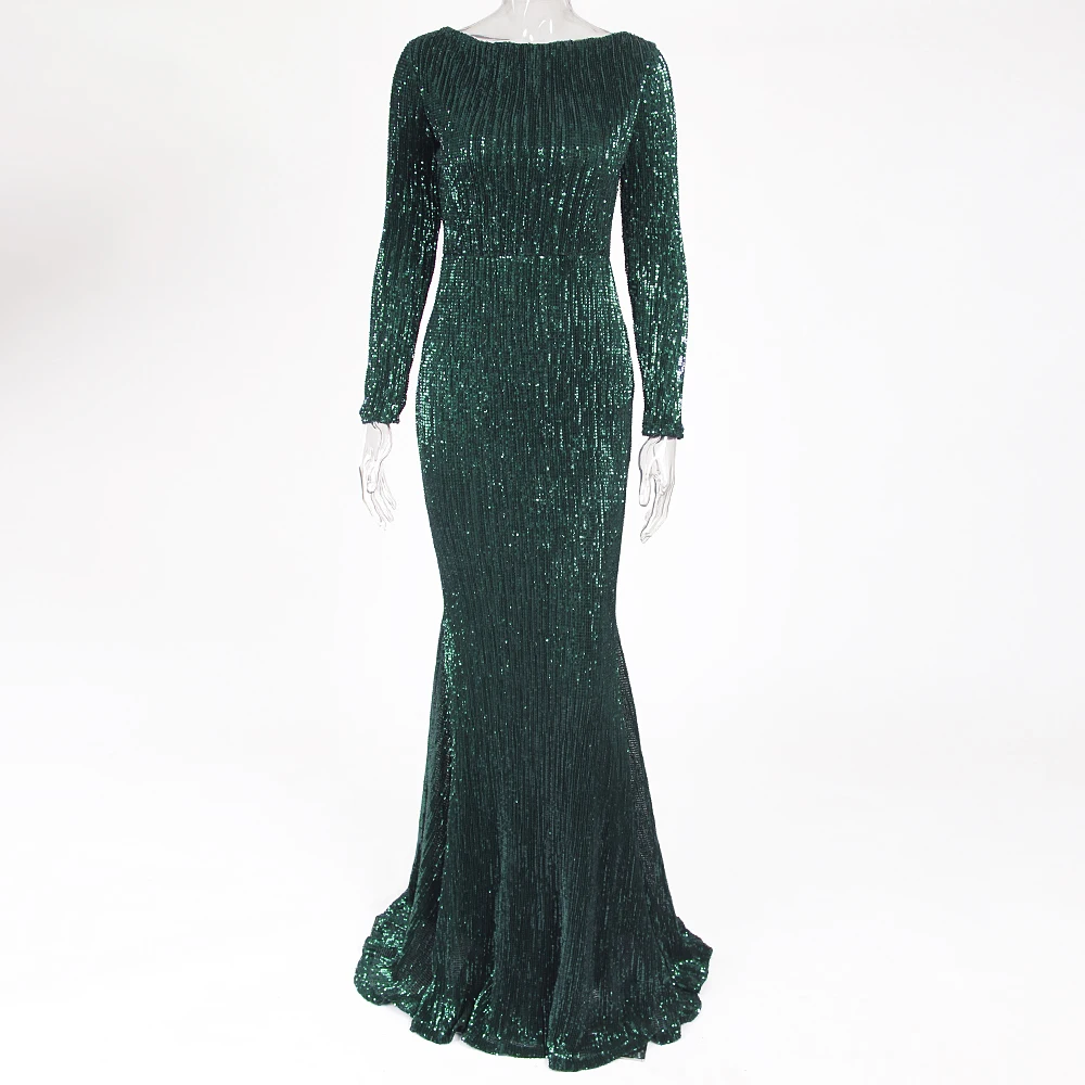 Женское вечернее платье русалка длинное темно синее с V образным вырезом и