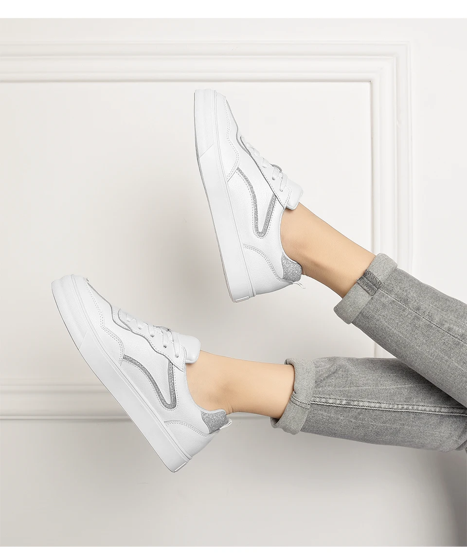 Повседневная женская обувь на плоской подошве со шнуровкой из натуральной кожи; Коллекция 2021 года; Модные женские белые туфли на плоской подошве; Дышащие удобные женские кроссовки; Сезон весна