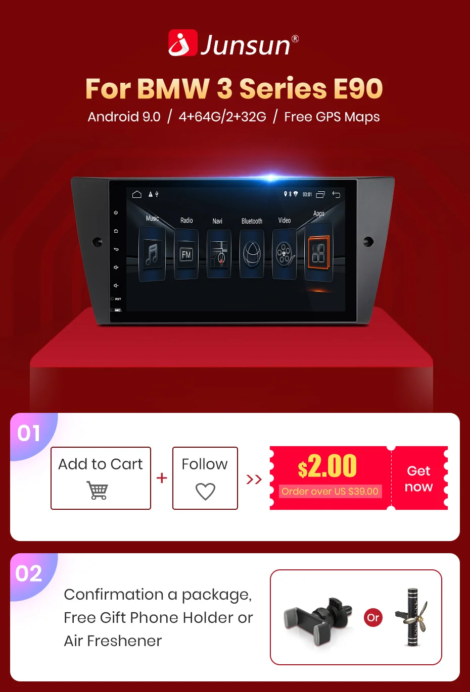 Теплые и важные советы: 1. Пожалуйста, поймите, что система и предустановленные приложения будут принимать участие в памяти; Если установить карту России займет около 3 Гб; Если установить карту Европы, система займет около 7 Гб; 2.Junsun имеет предварительно установленные офлайн карты и постоянно свободно обновляется > Об установке карт: Поддержка карты Европы/Северной Америки/Южной Америки/Юго-Восточной Азии/Ближнего Востока (мы установим карту по вашему адресу, например: Россия, мы установим карту России) > Об обновлении карты: Если вы хотите обновить карту, пожалуйста, свяжитесь с нами, мы загрузим ее в «Drop box», пожалуйста, не загружайте в других местах, в противном случае это повредит оригинальную карту. Обновление карты: один раз в год 3. Сумма не включает таможенные сборы. Ответственность за таможенное оформление лежит на покупателе, мы не несем ответственности за налоговый сбор. Если у вас есть специальный запрос, пожалуйста, свяжитесь с нами. Мы ценим ваше понимание и сотрудничество.