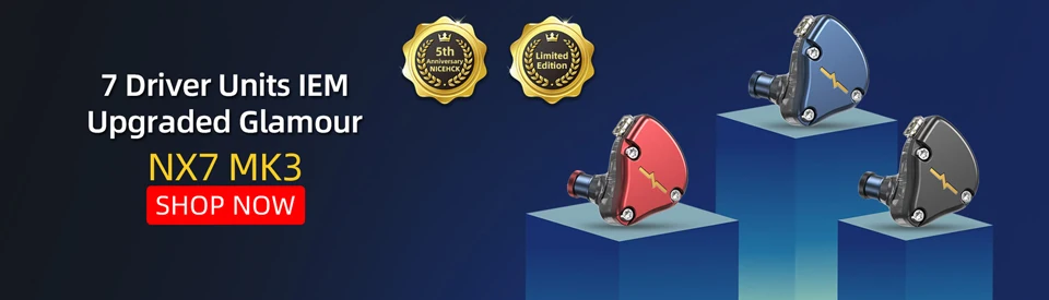 Наушники-вкладыши NICEHCK NX7 Hybrid с 7 драйверами, IEM, 4BA + Двойная углеродная нанотрубка, динамическая + пьезоэлектрическая керамика, 2-контактный монитор HIFI