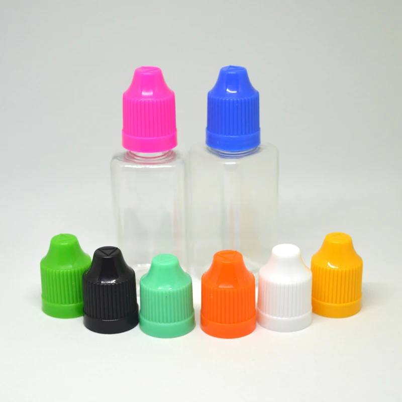30 мл ПЭТ прозрачная Квадратная бутылка пустая пластиковая капельница бутылки жидкость с детскими колпачками и тонкая бутылка с наконечником