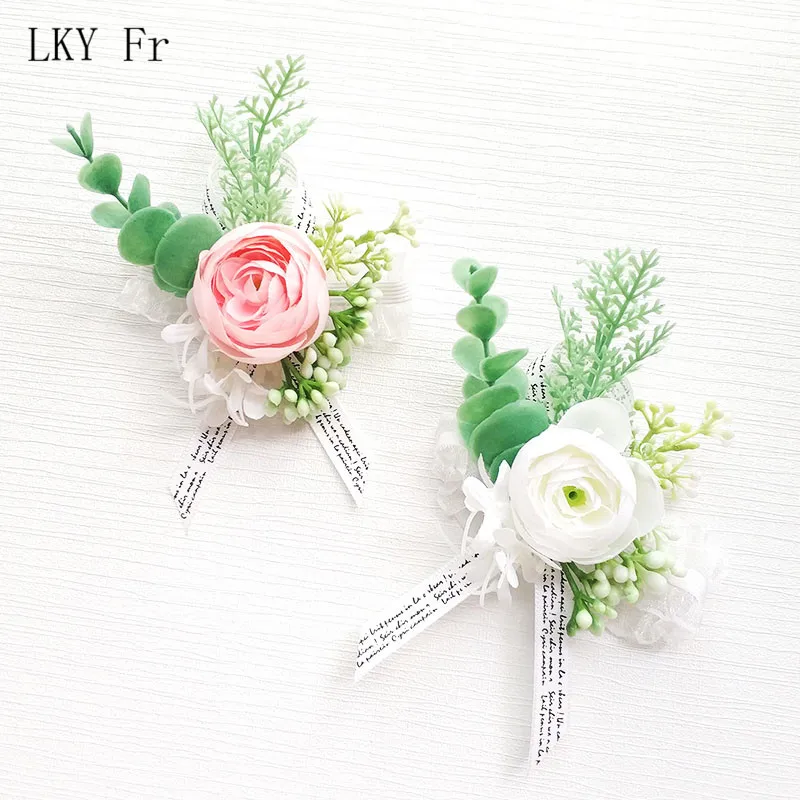 LKY Fr свадебный браслет-корсаж для подружки невесты, браслеты-манжеты для подружки невесты, искусственные розы, Белый Розовый Шелковый цветок, Браслет-корсаж, жених, бутоньерка, свадебные свидетельские свадебные аксессуары
