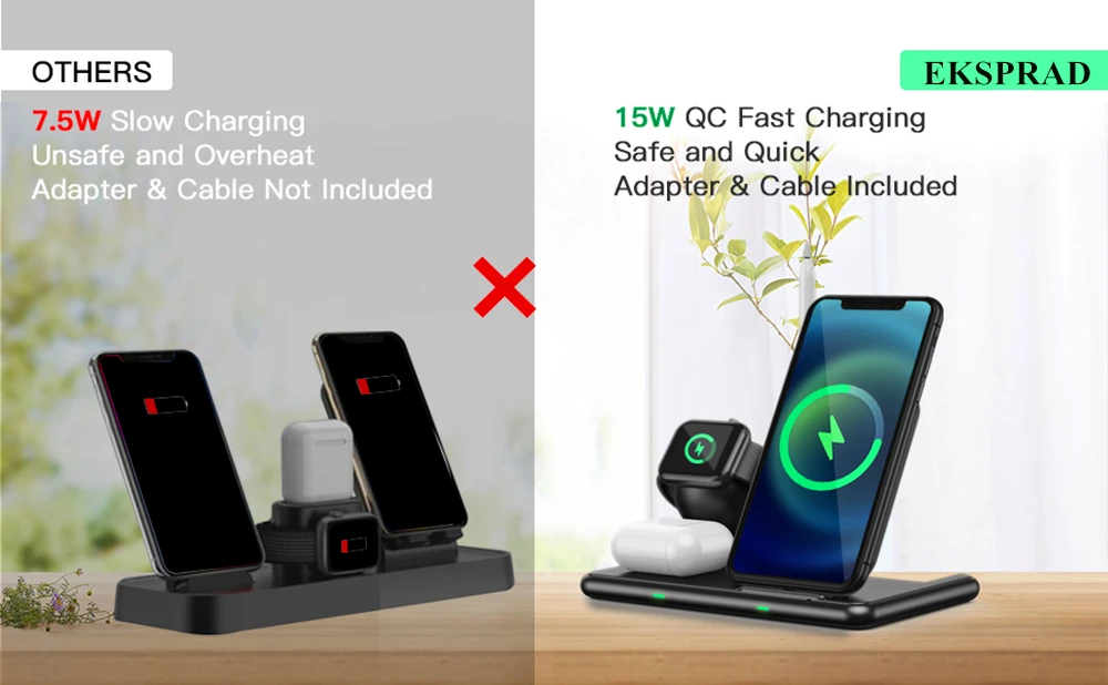 EKSPRAD 4 в 1 беспроводная зарядная станция 15 Вт Быстрая зарядка