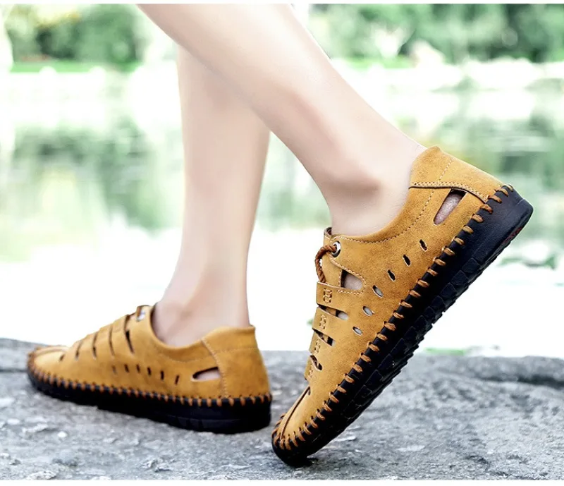 Мужские сетчатые сандалии с ремешком на щиколотке пляжные Повседневные Дышащие