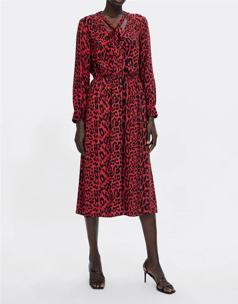 Женское длинное платье с леопардовым принтом, винтажное платье макси на шнуровке с длинным рукавом и животным принтом, осень 2019