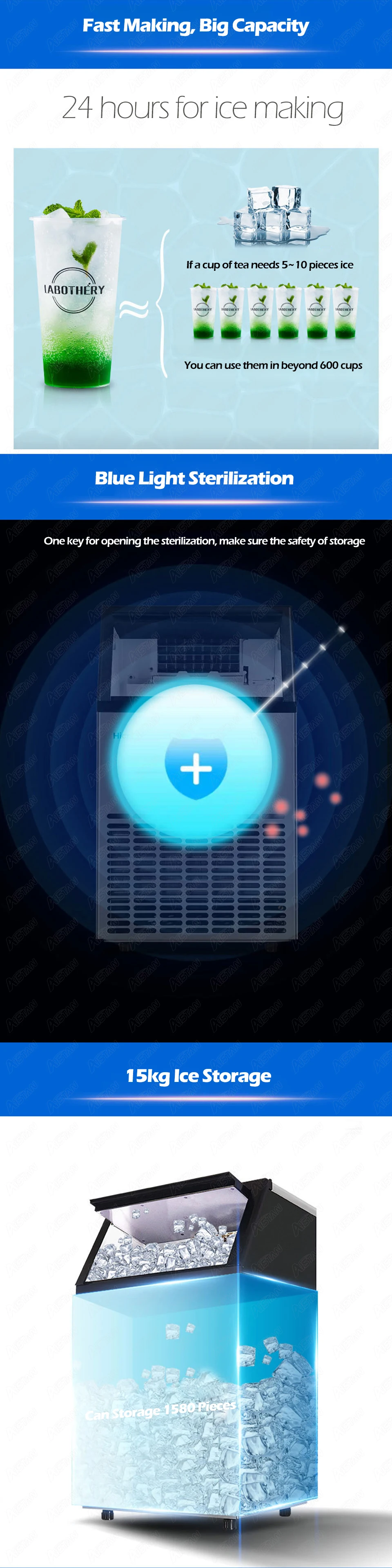 Хранение льда: 15 кг/1580 штук