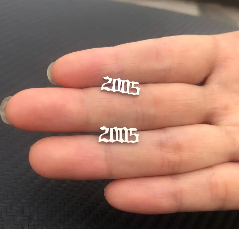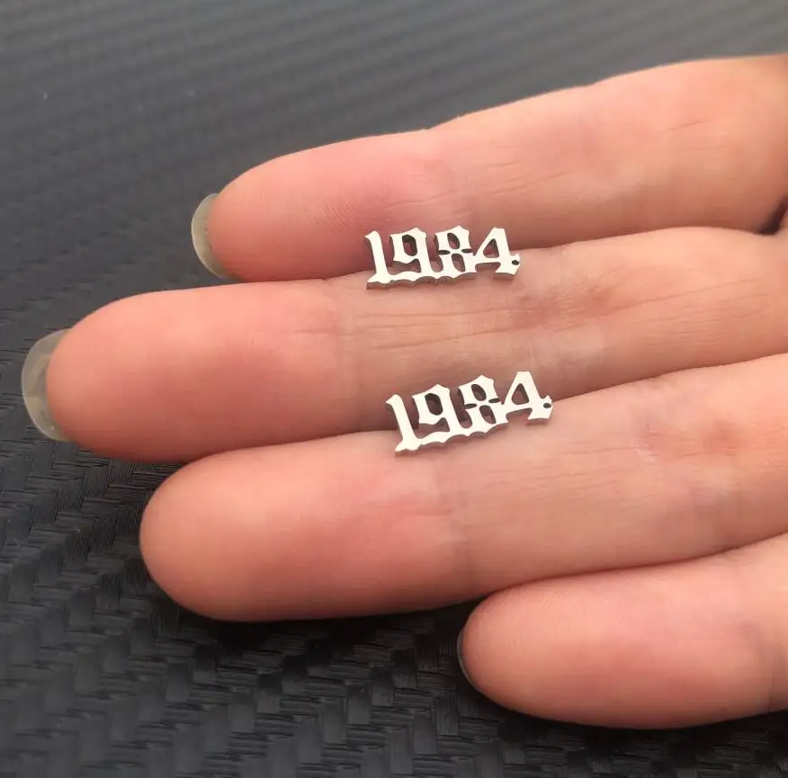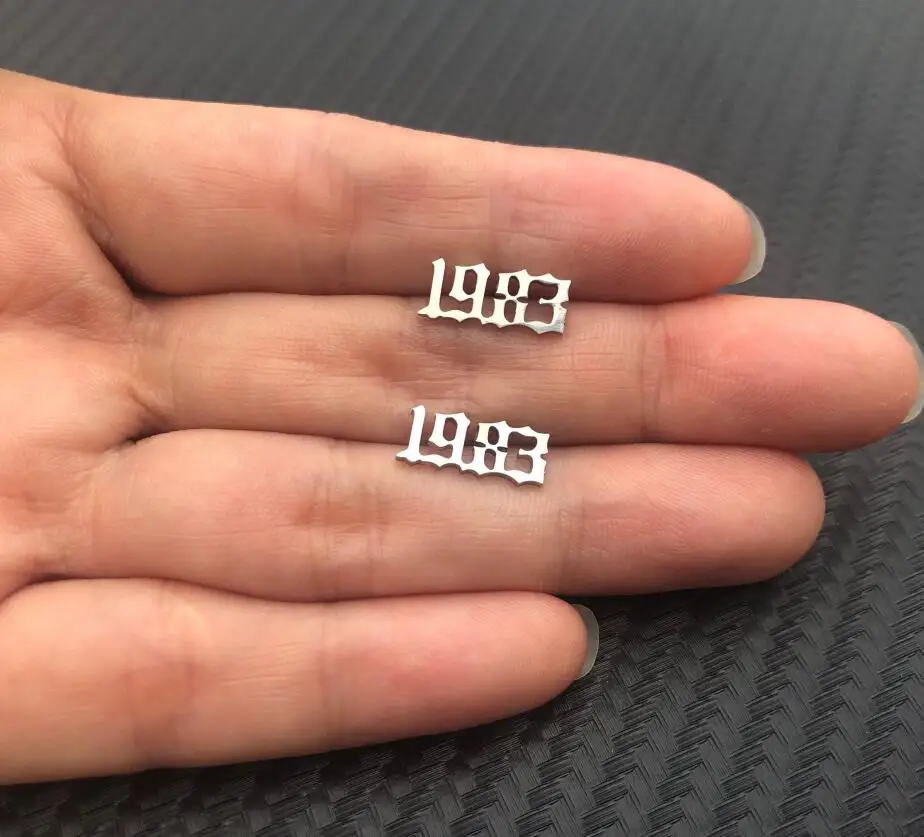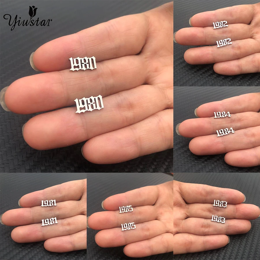 Yiustar нержавеющая сталь серьги с подвесками год Номер серьги-гвоздики для женщин пользовательские год 1980 1999 2008 подарок на день рождения 1980 до 2008 Материал серьги: серьги для девочек из нержавеющей стали Серьги Цвет: розовое золото/серебро/золото/черный Стад Серьги, модное ювелирное изделие