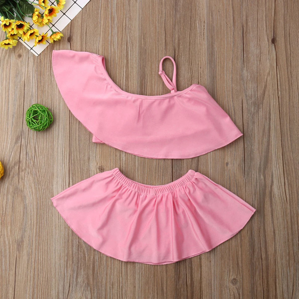 Новинка 2019, Модный Купальник с большим цветком для девочек, комплект бикини на одно плечо, мини-юбки с пачкой, 2 предмета, купальник, купальный костюм
