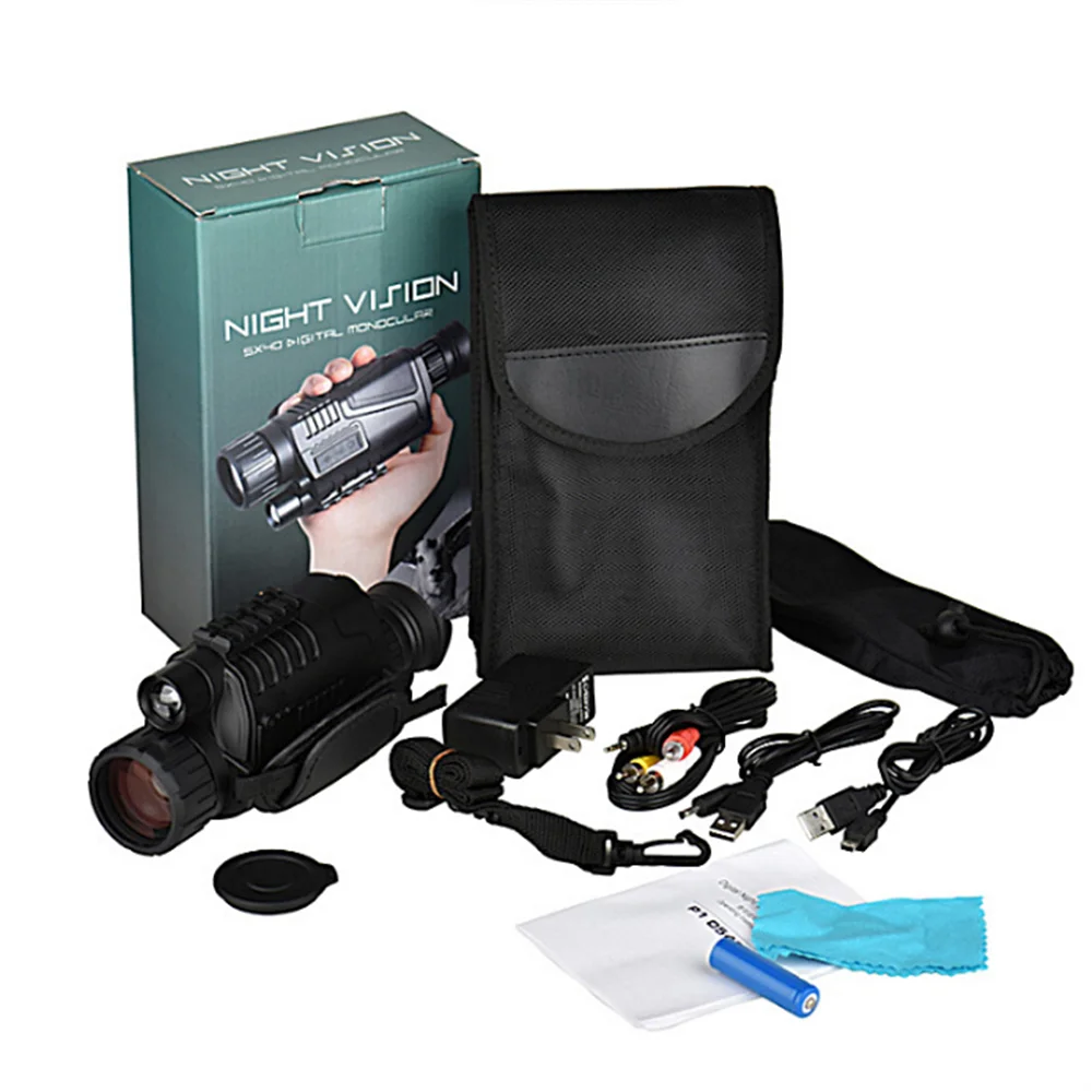 Аксессуары: устройство ночного видения, цветная коробка, сумка, кабель для передачи данных, зарядный кабель, руководство, аккумулятор, салфетка для протирки