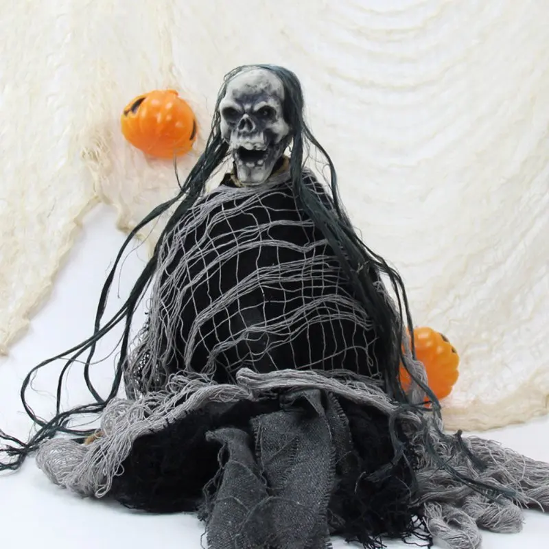 Большие отверстия на жуткой ткани, вы также можете повесить некоторые пауки, летучие мыши, черепа или другие украшения в сети, чтобы создать свою собственную сцену ужасов.