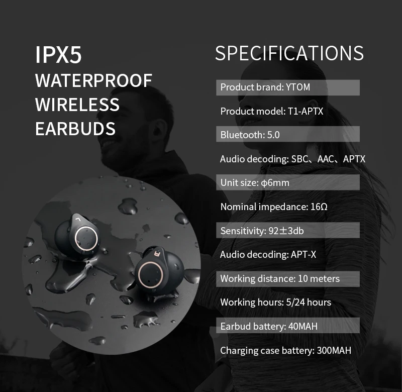 TWS-наушники с сенсорным управлением, Водонепроницаемая беспроводная мини-гарнитура Bluetooth, портативное зарядное устройство 3600 мА · ч для всех телефонов