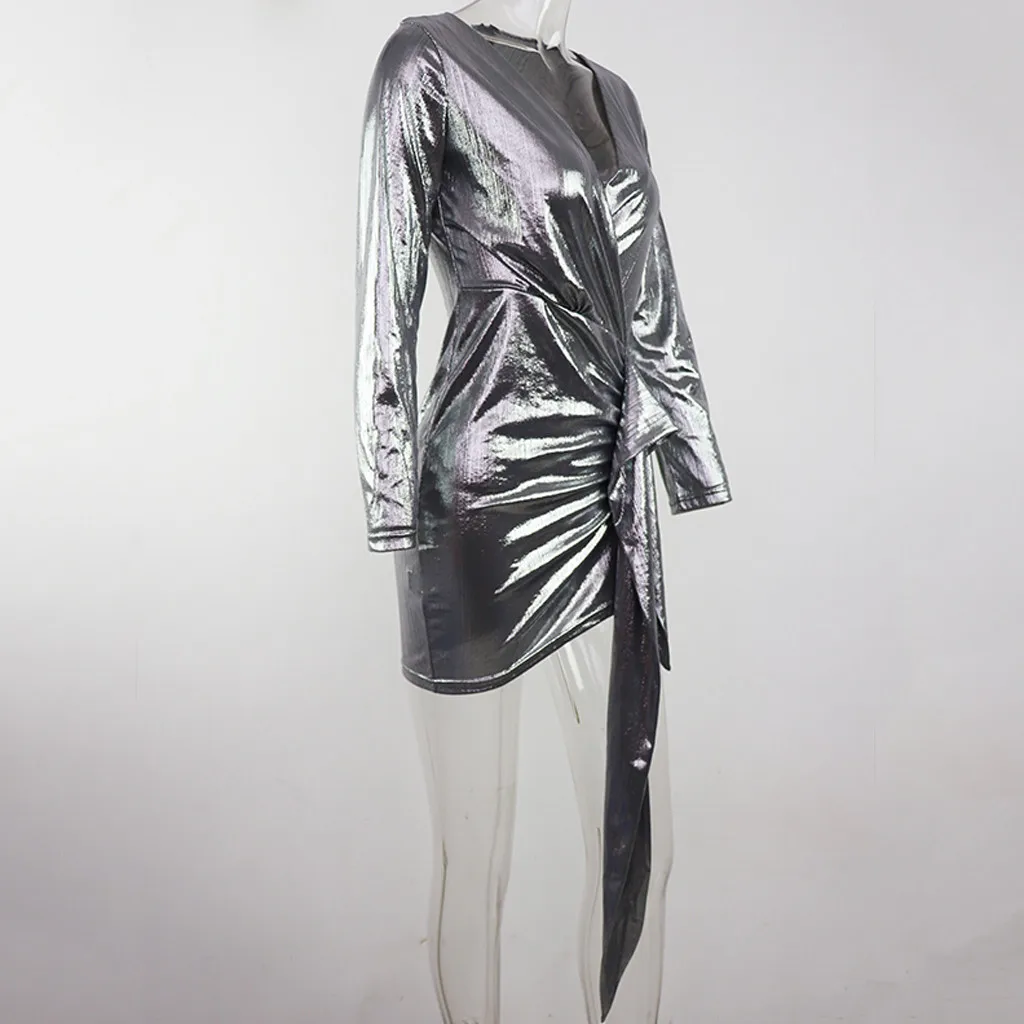 Женское сексуальное шелковое платье с длинным рукавом, однотонное короткое платье с v-образным вырезом