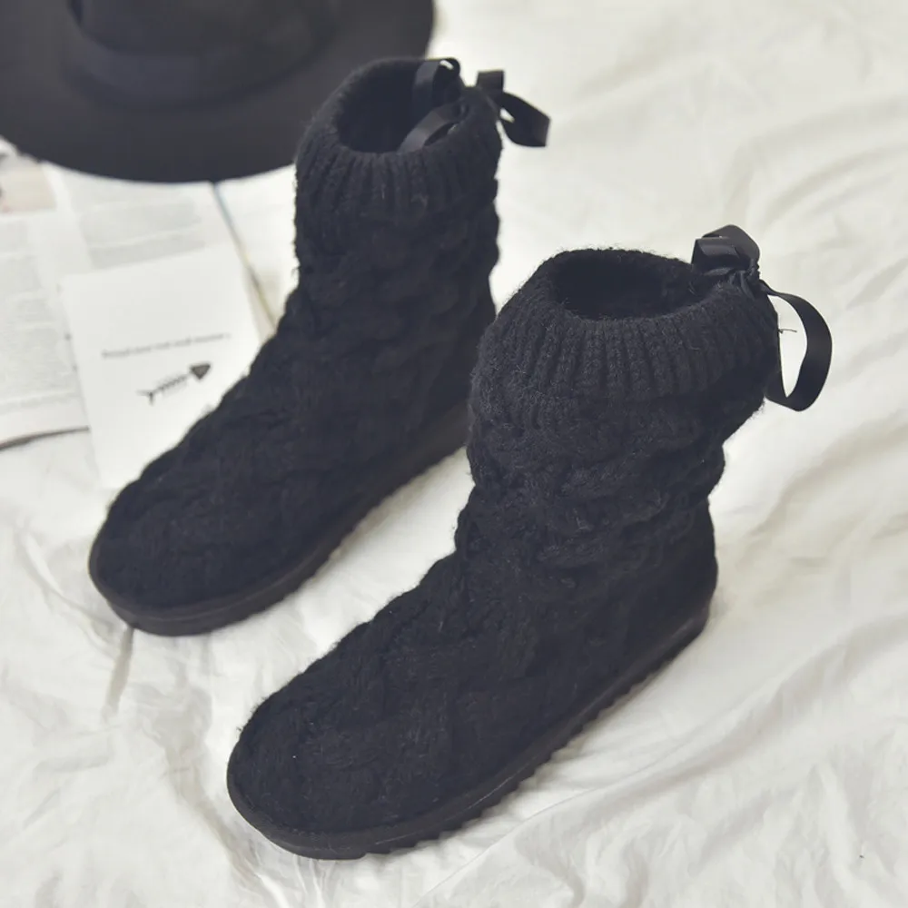 Женская шерстяная обувь с бантом; Высокая труба зимние ботинки; Теплые ботинки; Зимние ботинки