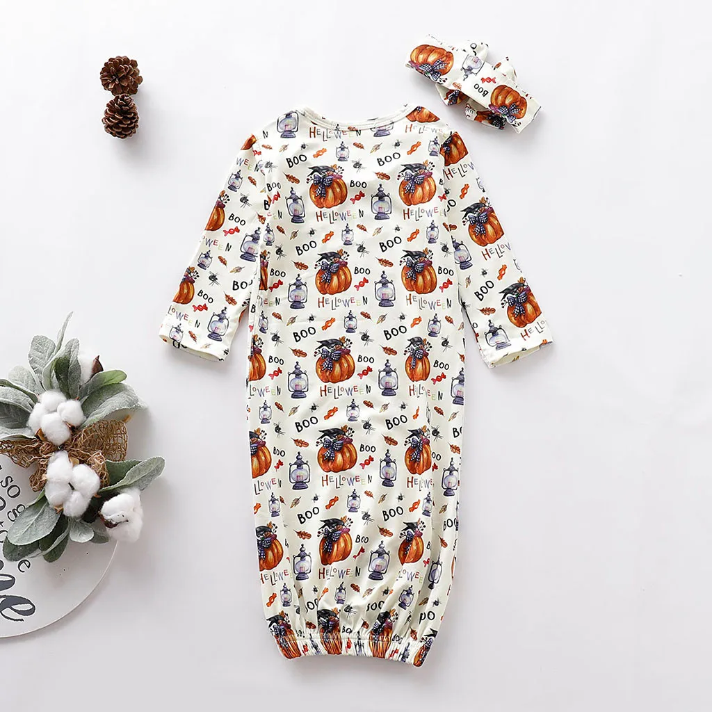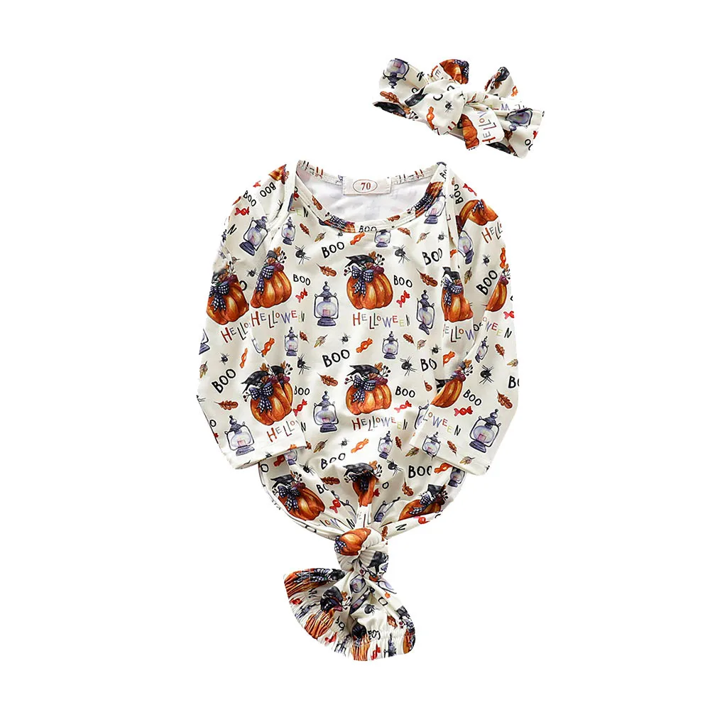 Спальный мешок для новорожденных мальчиков и девочек с рисунком на Хэллоуин, пеленальный мешочек, повязка на голову