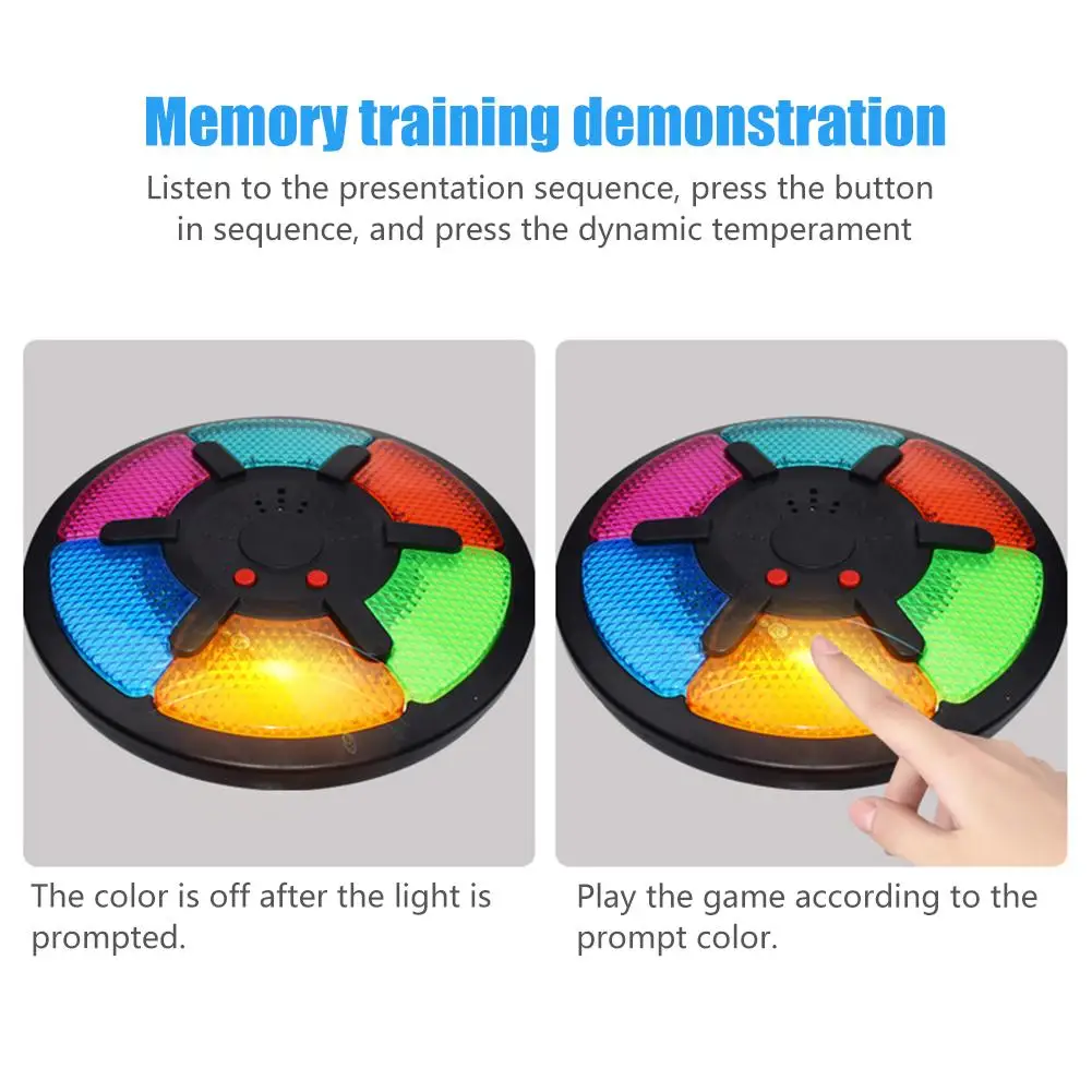 1. Новая модель увлекательной электронной игрушки с памятью для детей старше 3 лет, которая улучшает память и развивает терпение. Игра нацелена на повторение последовательности колоусов в том порядке, в котором они мигают.1 * Игра с памятью