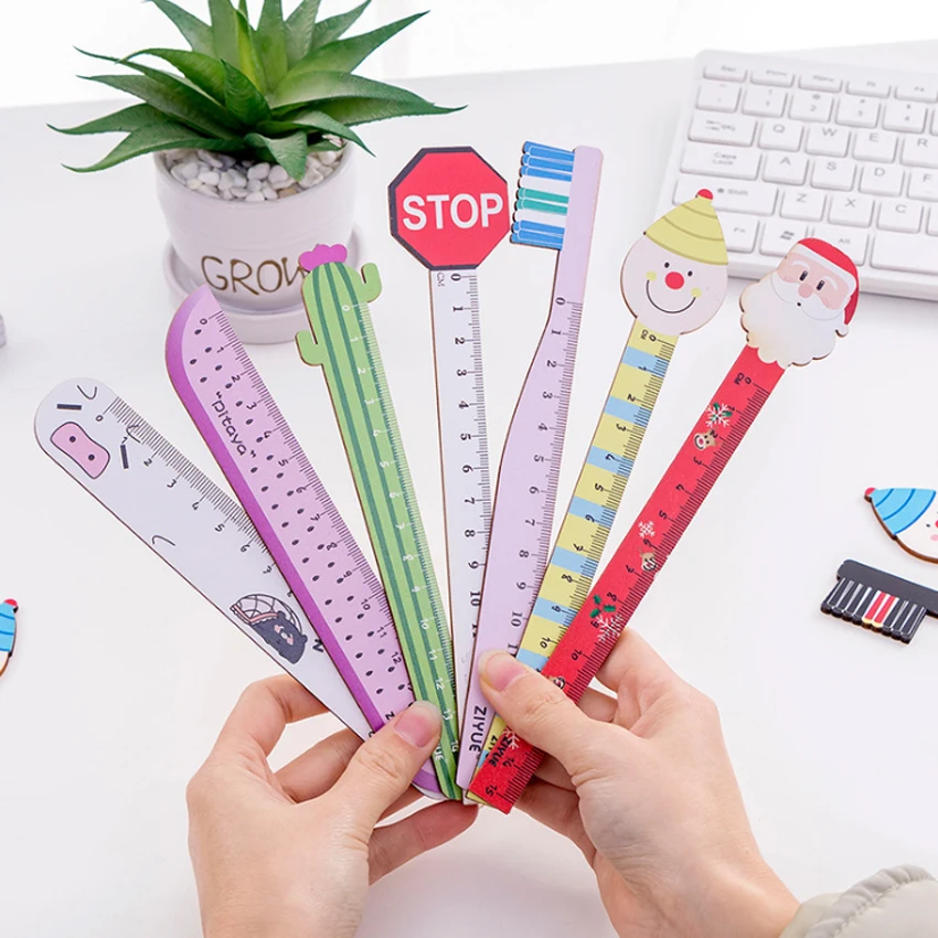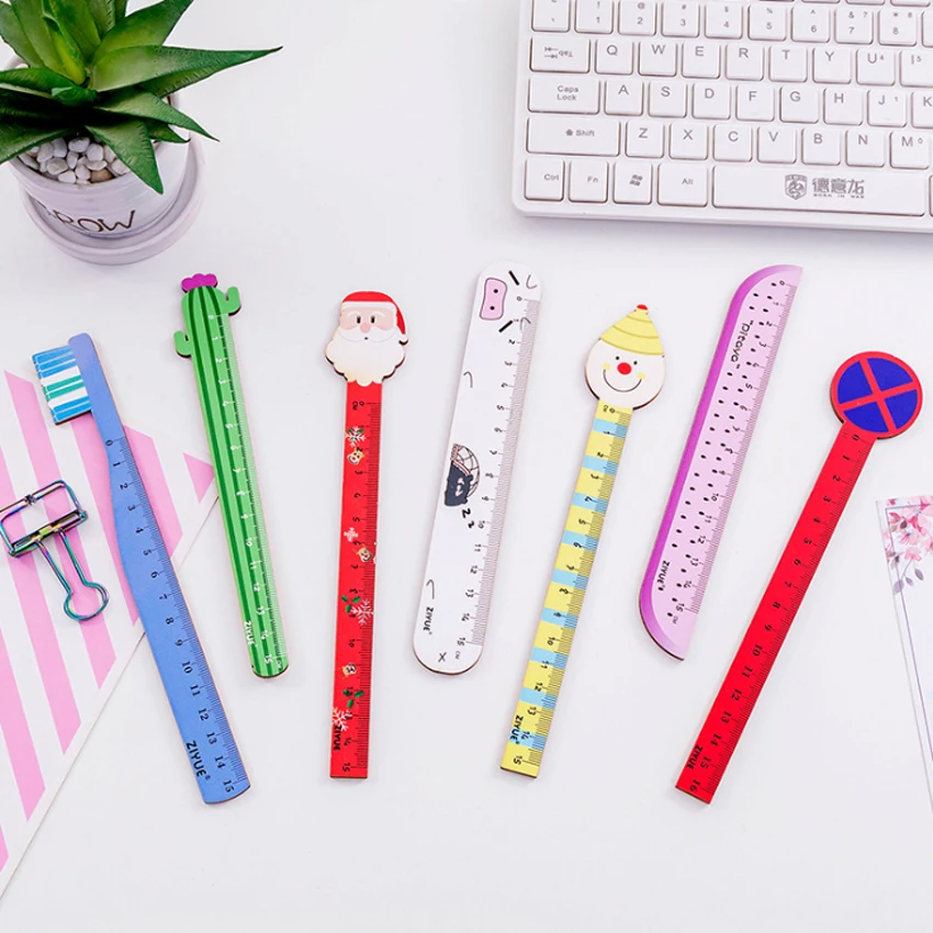 1 шт./лот деревянная прямая Линейка 15 см с милым мультяшным фруктовым рисунком