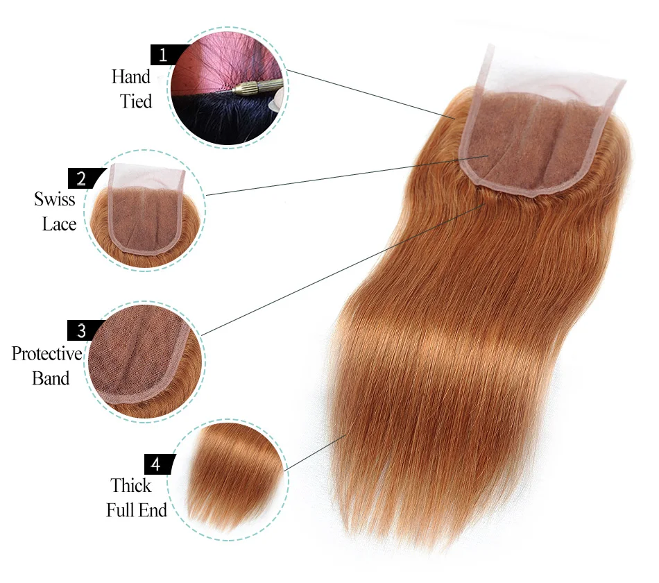 Пряди i-envy Ginger, блонд, с кружевной застежкой, цветные #30, бразильские прямые человеческие волосы, 3 пряди, с 4*4 закрытыми, не Реми