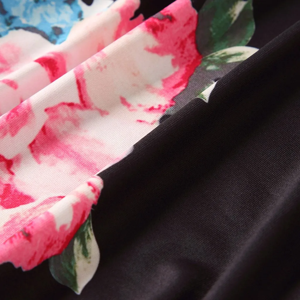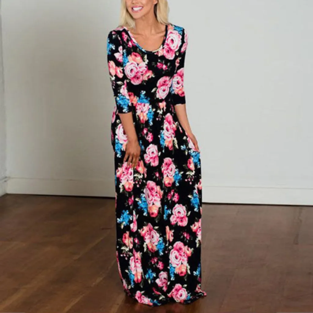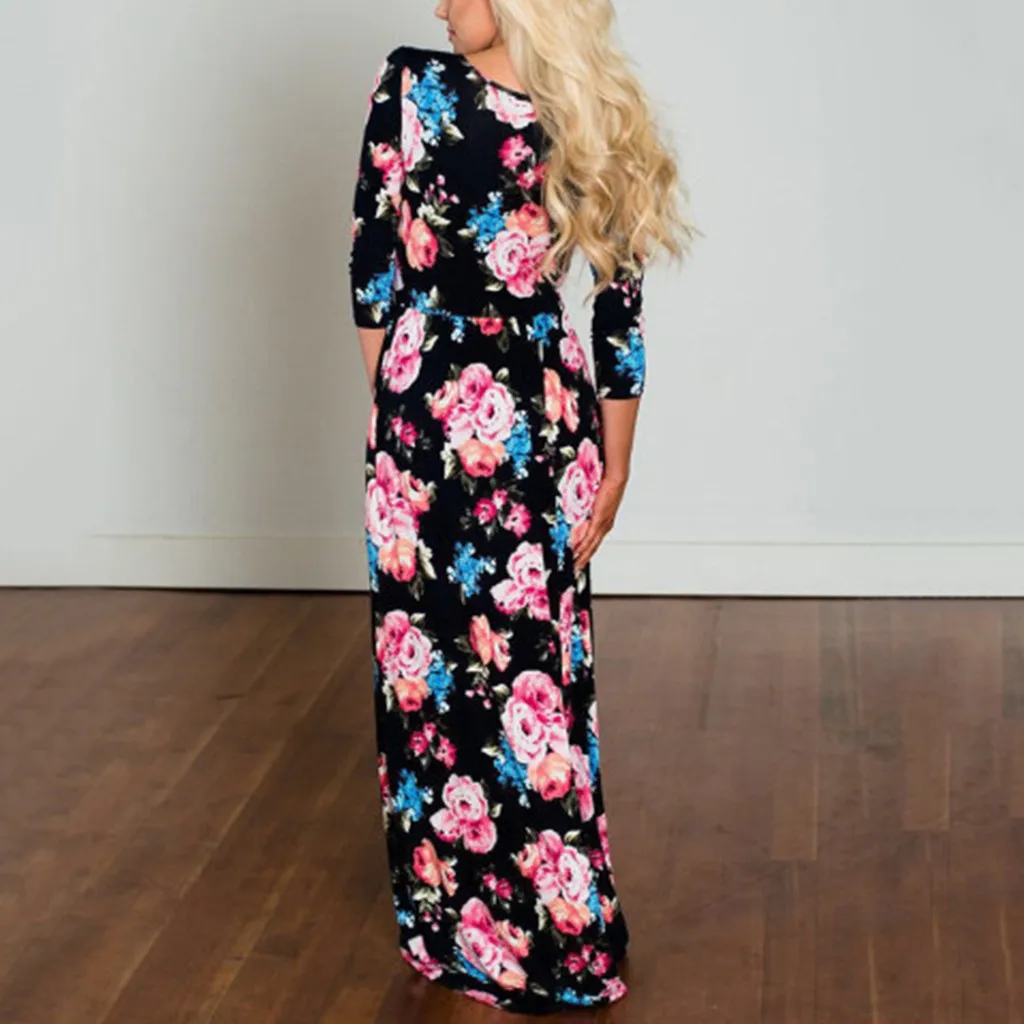 Mother And Daughter Women 3/4 Sleeve Floral Print Dress Family Matching Clothes