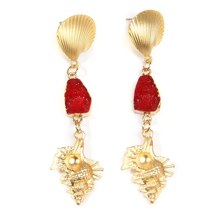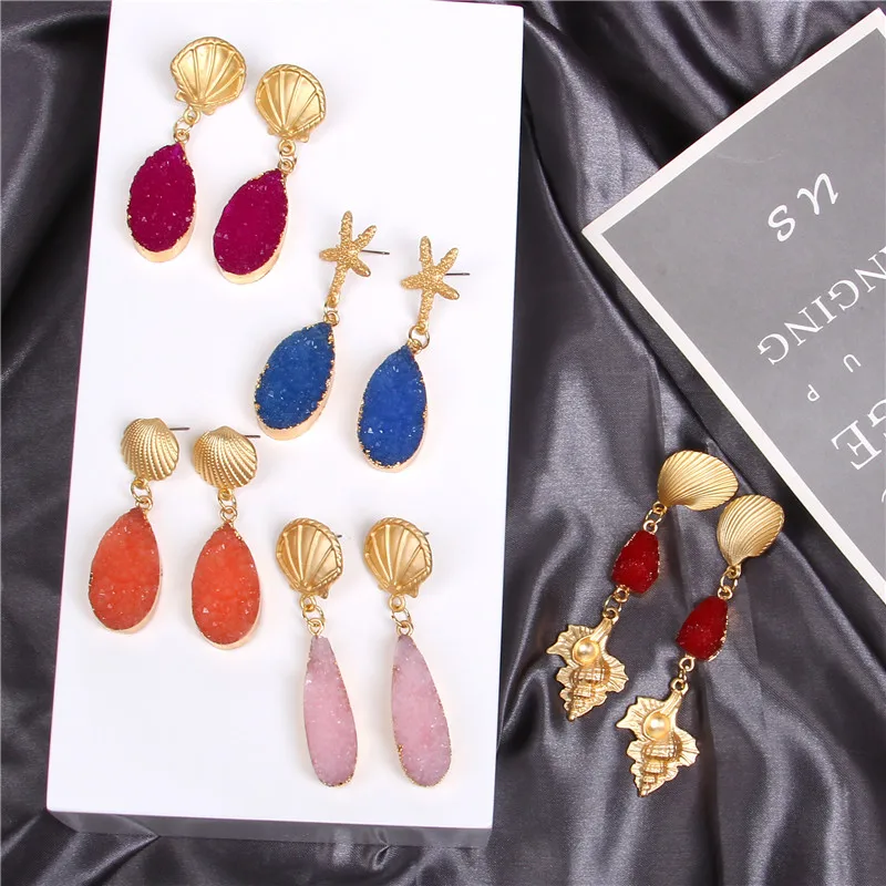 Серьги-подвески из Друза природного камня, летние пляжные украшения для женщин, ювелирные изделия ручной работы, длинные серьги