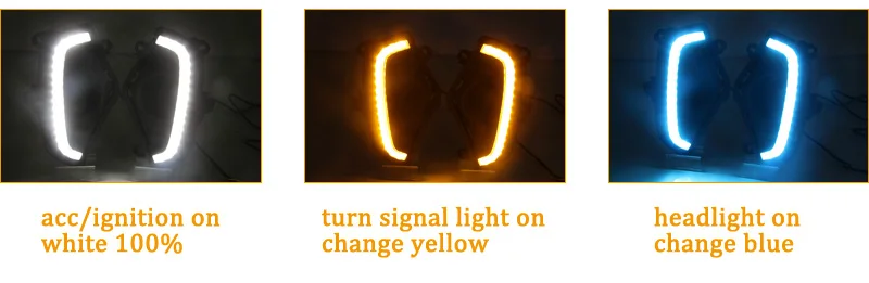 * В комплект входит (2 шт. светильник + 1 шт. контроллер); * DRL-on при включении acc/зажигания; * DRL-желтый, когда включается сигнальный светильник; * DRL-синий, когда включается головной светильник (только белый, желтый, синий);