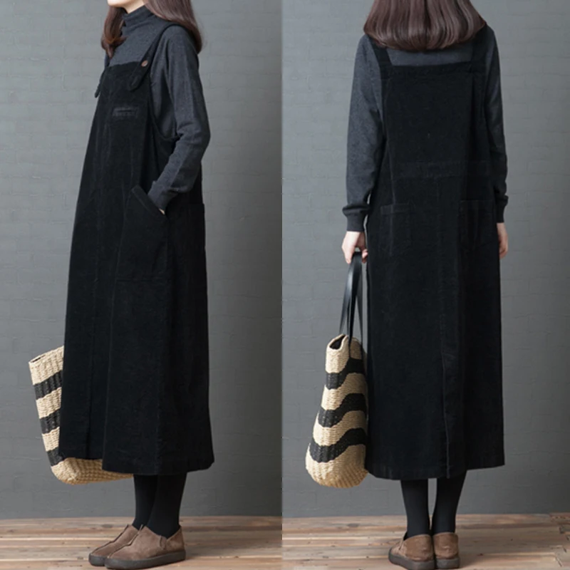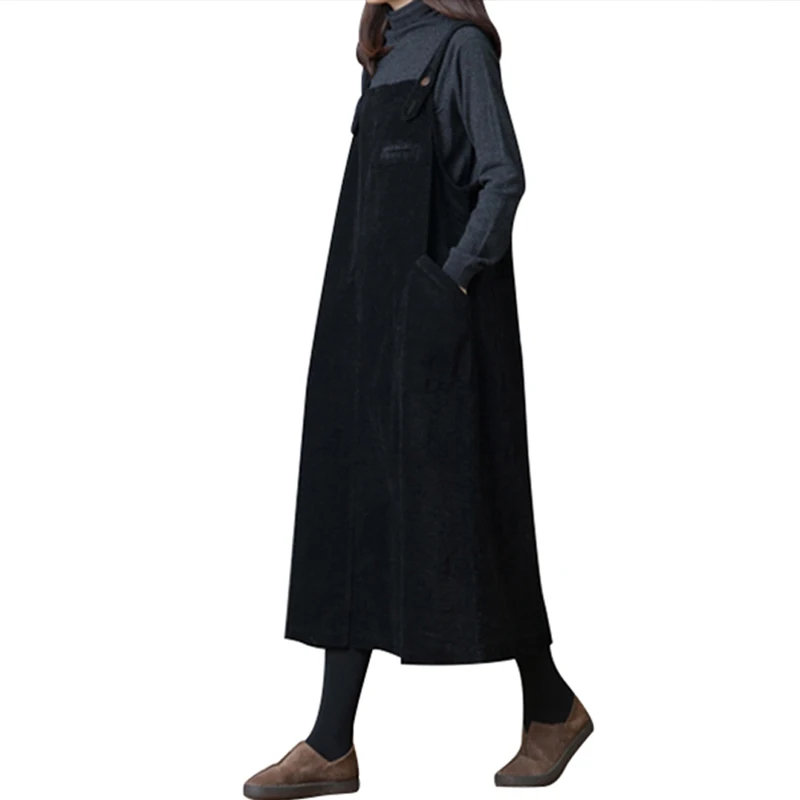 Это повседневное вельветовое платье имеет сплошной цвет по всей поверхности, спагетти ремень и без рукавов, боковые карманы и свободный крой привносит шикарный стиль. Возьмите в свой гардероб.