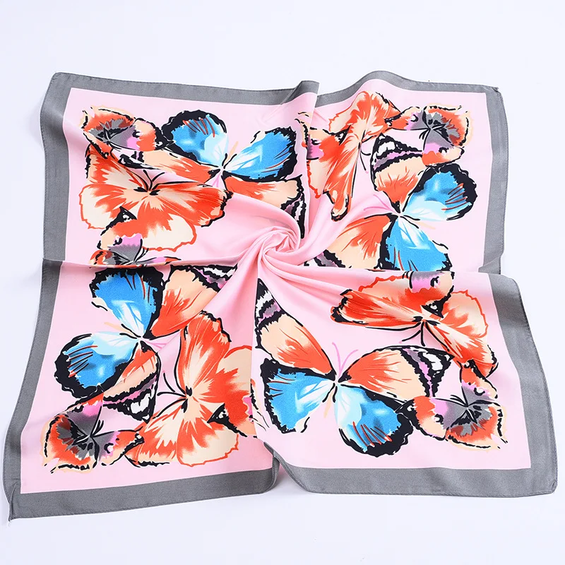Шелковый шарф 60*60 см, роскошный брендовый шарф с цветным принтом, мусульманский платок, квадратные шарфы для женщин, женская бандана FJ028