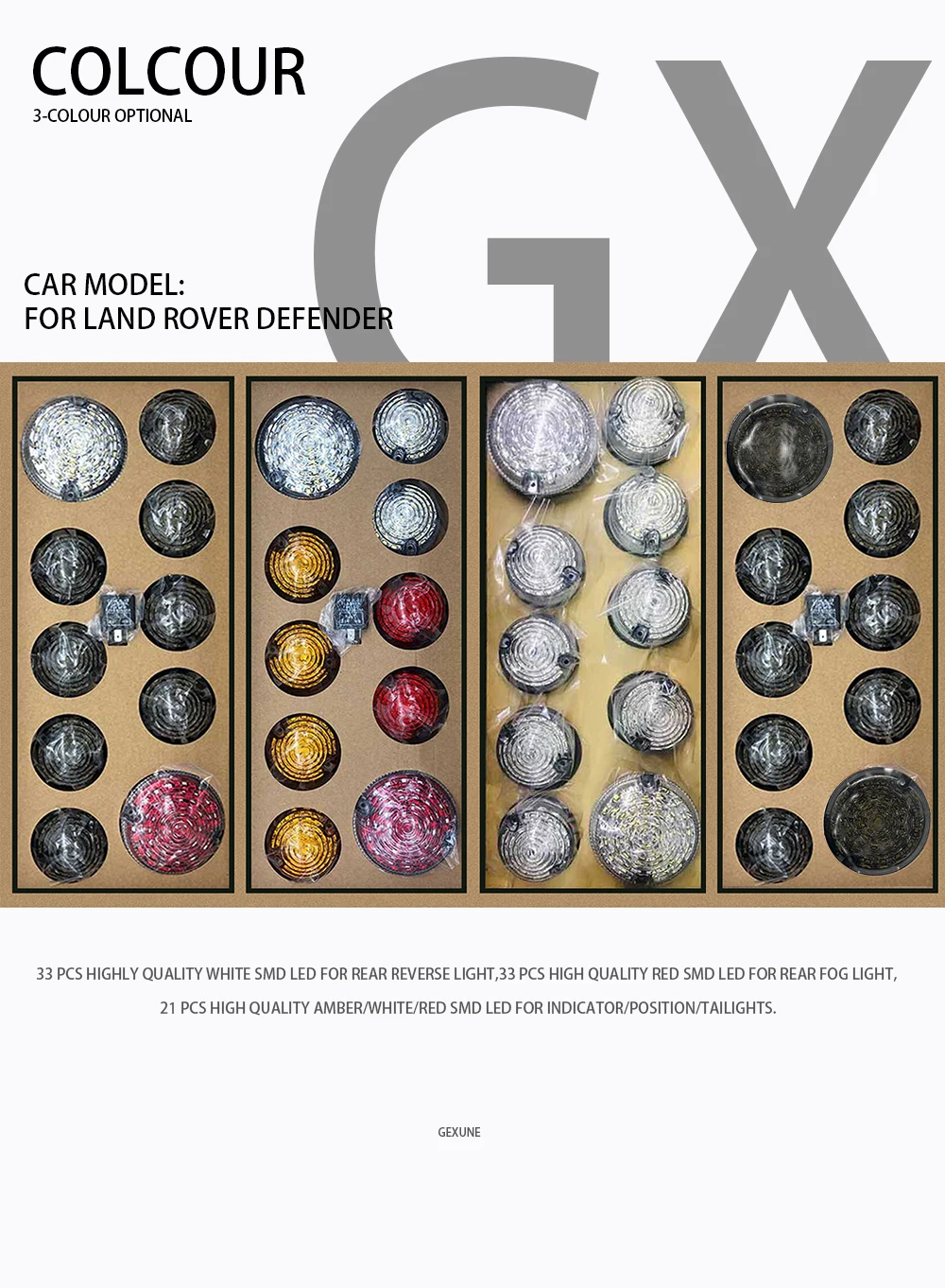Применение: подходит для Land Rover Defender 1990-2016 Особенности: Дымовые линзы/прозрачные линзы/цветные линзы Диаметр 95 мм (задние фары/задние фары, задние противотуманные фары) Диаметр 73 мм (передние и задние Световые индикаторы, задние стоп-сигналы, передние Габаритные огни) 33 шт. высококачественный белый SMD светодиодный задний светильник, 33 шт. высококачественный красный SMD светодиодный задний противотуманный светильник, 21 шт. высококачественный Янтарный/белый/красный SMD светодиодный индикатор/положение/tai светильник s. Длительный срок службы и низкое энергопотребление. Это обновленный светодиодный комплект, а не оригинальные комплекты OEM. Спецификация: Цвет линз: Дымчатая/прозрачная/цветная линза PMMA Светильник s Цвет: белый для обратного светильник, красный для заднего противотуманного светильник, янтарный для переднего и заднего индикатора светильник s, белый для переднего положения светильник s Диаметр: 95 мм/73 мм Водонепроницаемость: IP67 Сертификация: E-mark(E4)/E утвержден/E sign/E документы одобрены для дорожного права в ЕС DOT SAE утвержден для дорожного права в Америке Посылка включает в себя: 1x регулируемый светодиодный фонарик 4x стандартные янтарные передние и задние индикаторы (73 мм) 2x Стандартный размер красный задний стоп/задний фонарь (73 мм) 2x Стандартный размер белый передние фары (73 мм) 1 задний светильник большего размера (95 мм) 1 задний противотуманный светильник большего размера (95 мм) 20 винтов + 20 винтов
