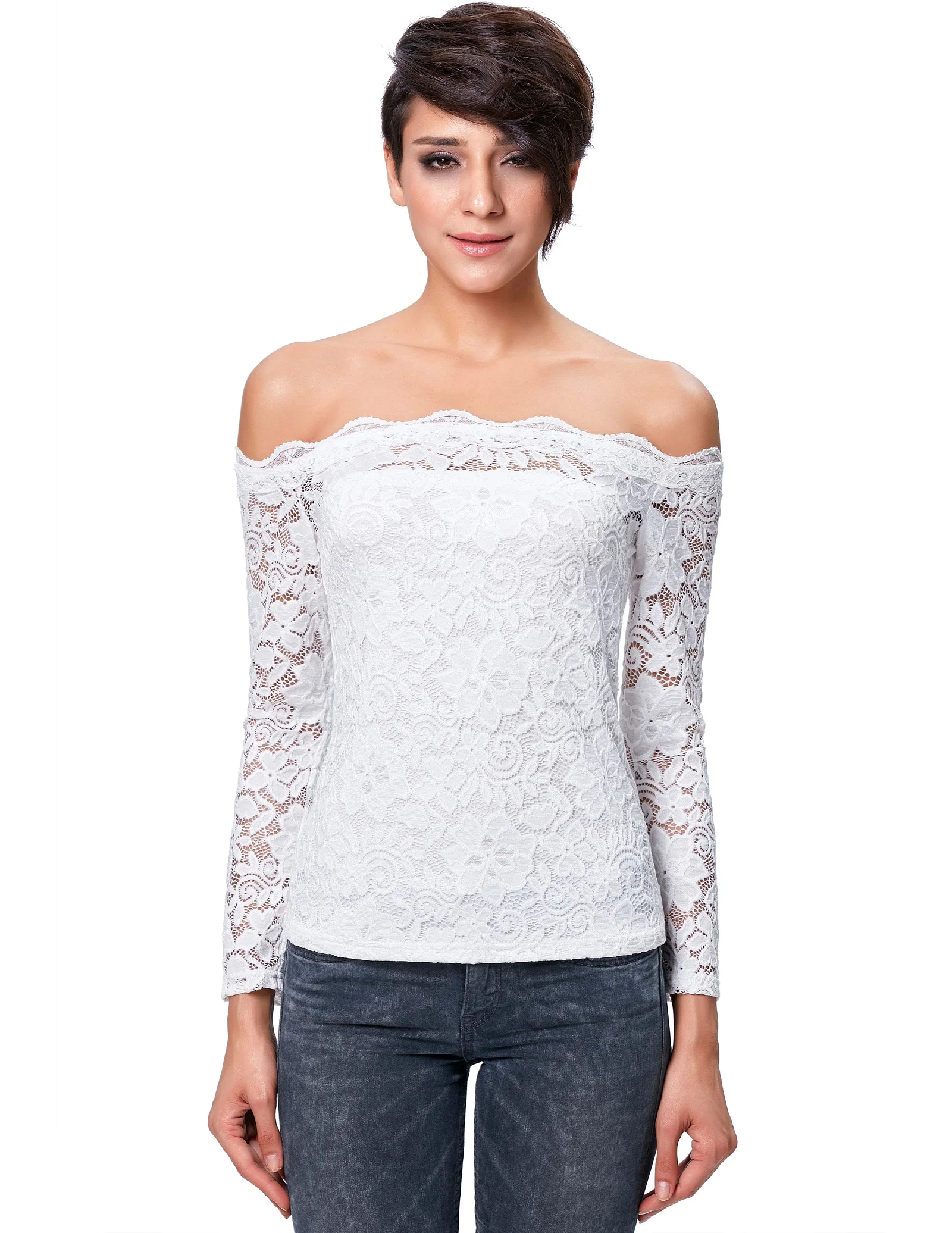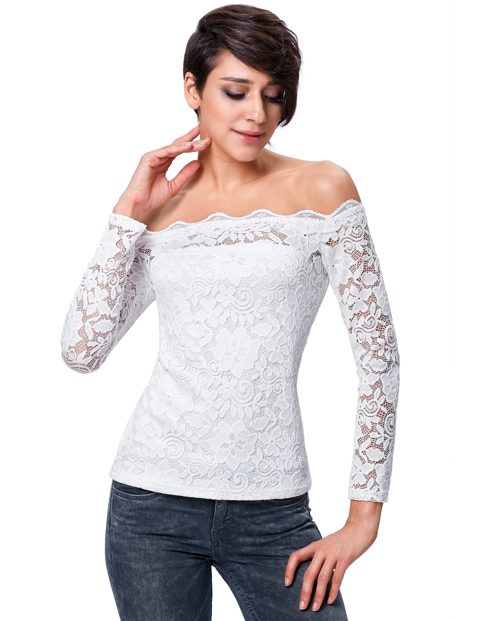 1)Одежда с длинными рукавами 2)С открытыми плечами 3)Одежда немного эластичная 4)Подкладка сшита кружевным слоем |
