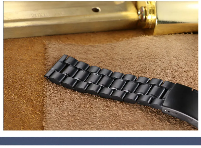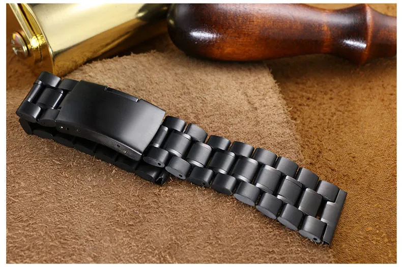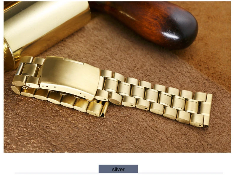 -100% Новые Фирменные и высокого качества -14 мм, 16 мм, 18 мм, 20 мм, 22 мм, 24 мм, 26 мм -Серебристый, серебристый, золотой, золотой, черный -Раскладывающаяся застежка -Пять плоских бусин -Использовать для: обычные Ремешки для наручных часов -Посылка: 1 * ремень (с инструментом)