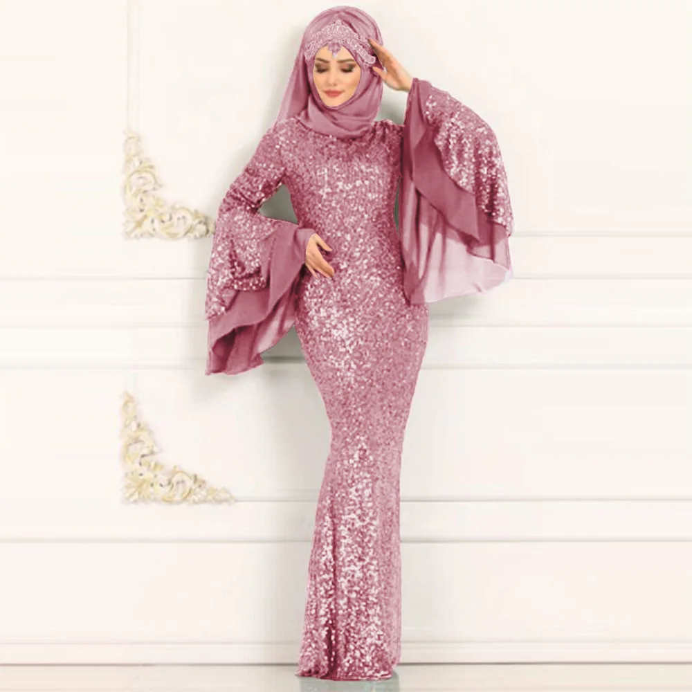 Розовое блестящее модное женское элегантное платье Макси сексуальные длинные