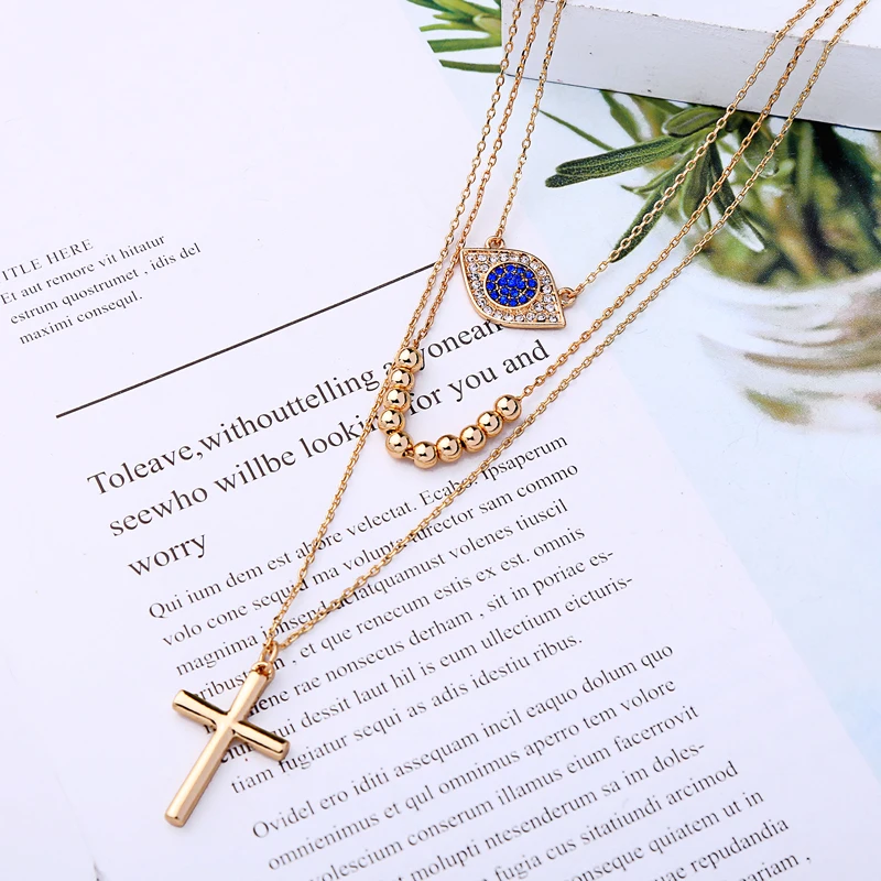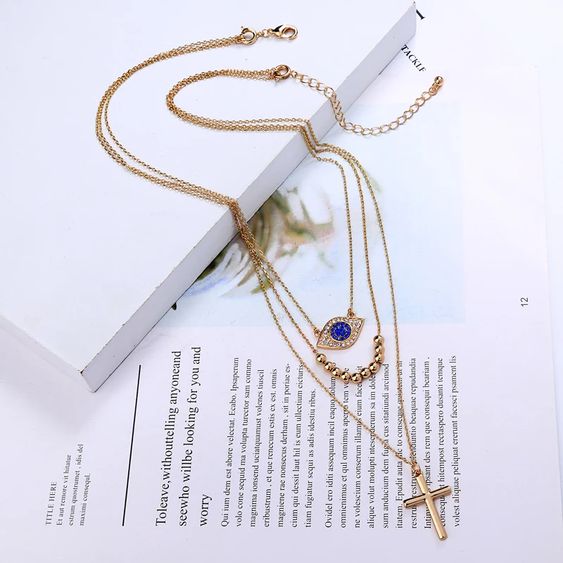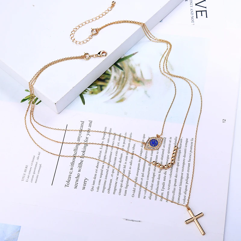 3-слойное первоначальное ожерелье, подвески с христианским крестом, ожерелья золотого цвета, съемные цепочки для женщин, модные ювелирные аксессуары