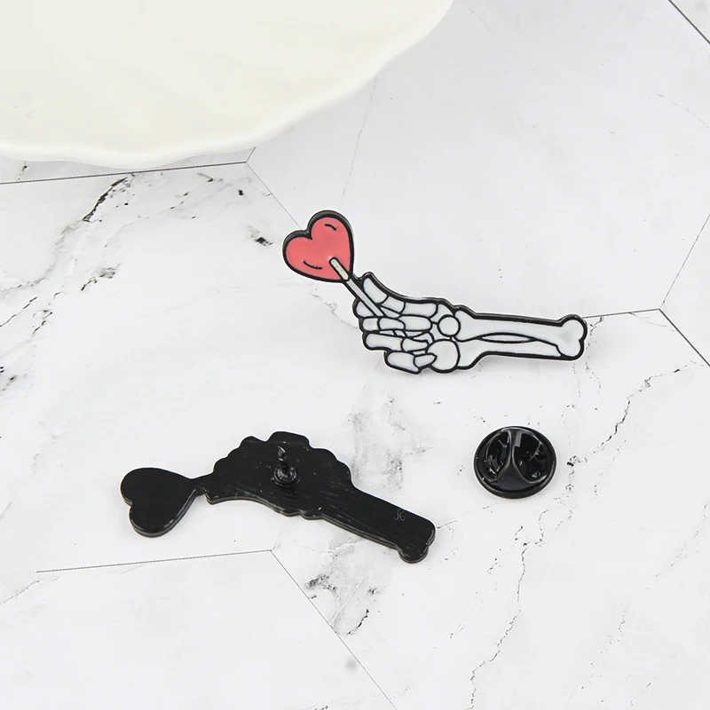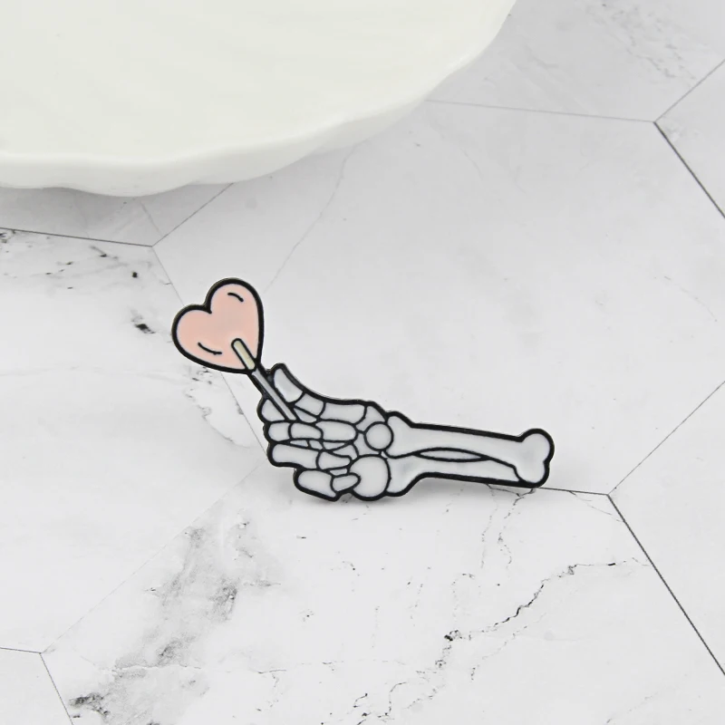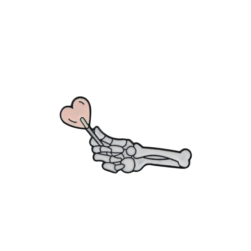 Мультфильм Красивый череп ручной броши женские творческие кости руки держат любовь панк темная Эмаль Булавка любовник значок шпильки ювелирные изделия подарки