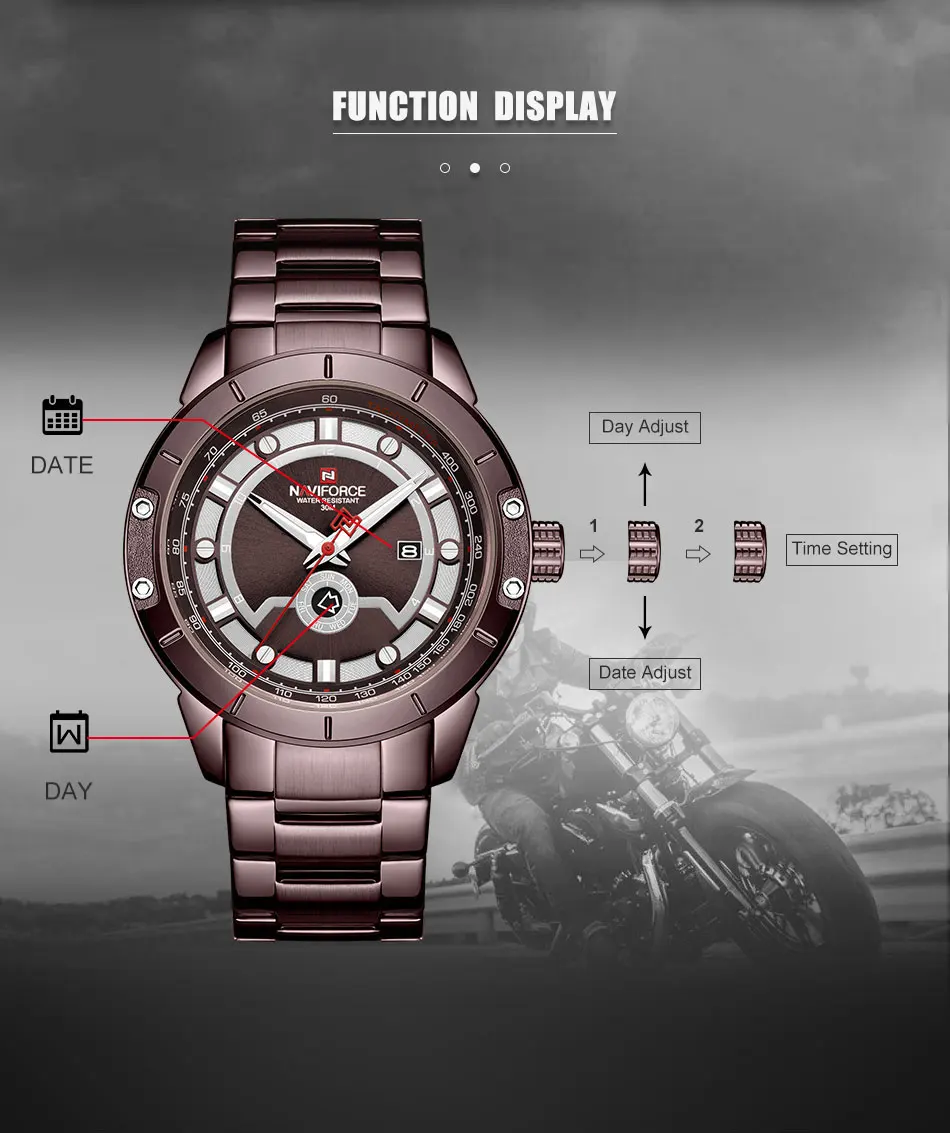 Мужские s часы Топ люксовый бренд NAVIFORCE мужские часы с полностью стальным корпусом кварцевые часы аналог Мода Плавание Спорт, армия, военный наручные часы