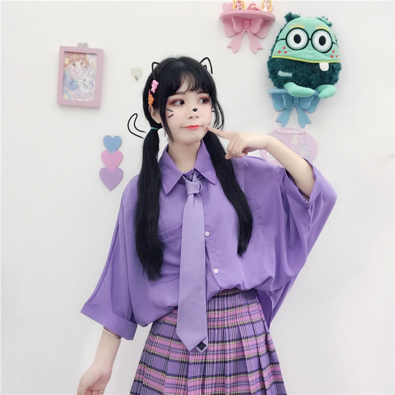 VOA Весенняя фиолетовая Офисная Женская шелковая блузка размера плюс тонкая