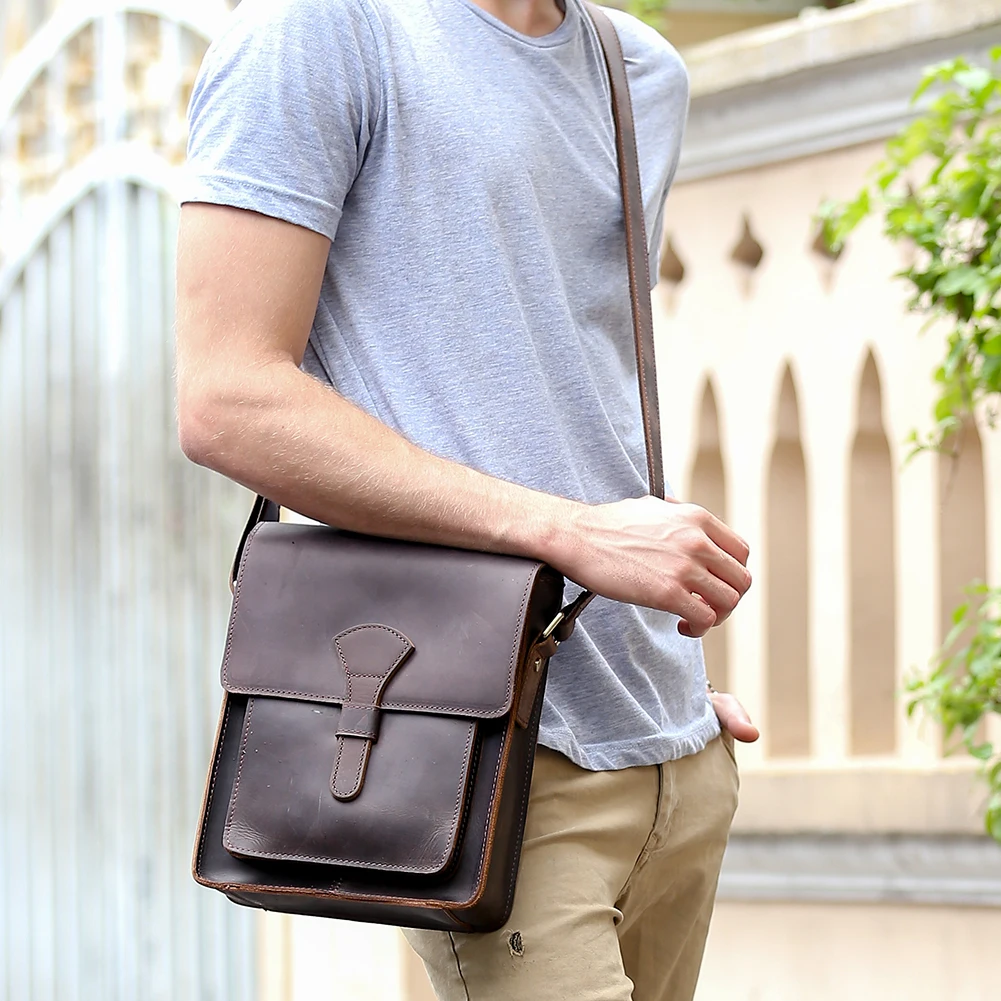 Название: Роскошная Высококачественная Мужская кожаная сумка-мессенджер через плечо, винтажная темно-коричневая сумка на плечо для iPad, маленькие кожаные сумки Crazy Horse Пункт NO. : 1112 Материал: 100% первый слой из коровьей кожи (кожа crazy horse), кожа с натуральным лицевым покрытием высшего качества Размер: 22 (Д) * 7,5 (Ш) * 26 (В) см 8,6 (Д) * 2,9 (Ш) * 10,2 (в) дюймов Вес: 0,75 кг Длина ремешка: 74 см-140 см (Д) * 4 см (Ш) 29 дюймов-55 дюймов (Д) * 1,5 дюйма (Ш) Винтажная стильная сумка-мессенджер, изготовленная из высококачественной толстой и прочной кожи crazy horse. Два ряда стежков на соединении, регулируемый кожаный и холщовый ремешок. Передний Флип с пряжкой на ремне-красивый дизайн, стремление к совершенству, даже слайдер на молнии фиксируется стежками и заклепками Один передний карман, один задний карман, есть один карман на молнии, чехол для мобильного телефона, кошелек в главном кармане.