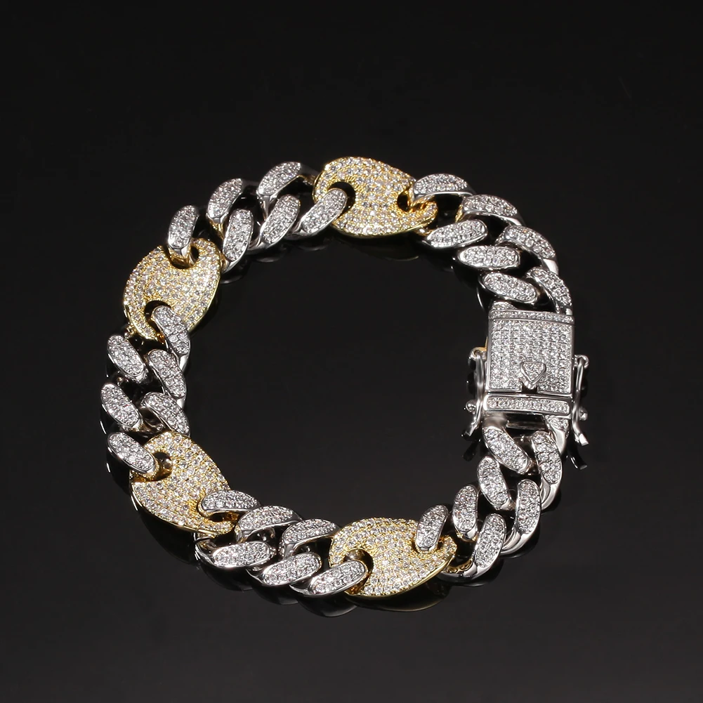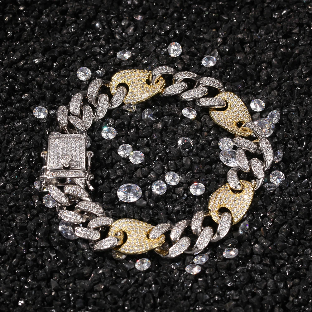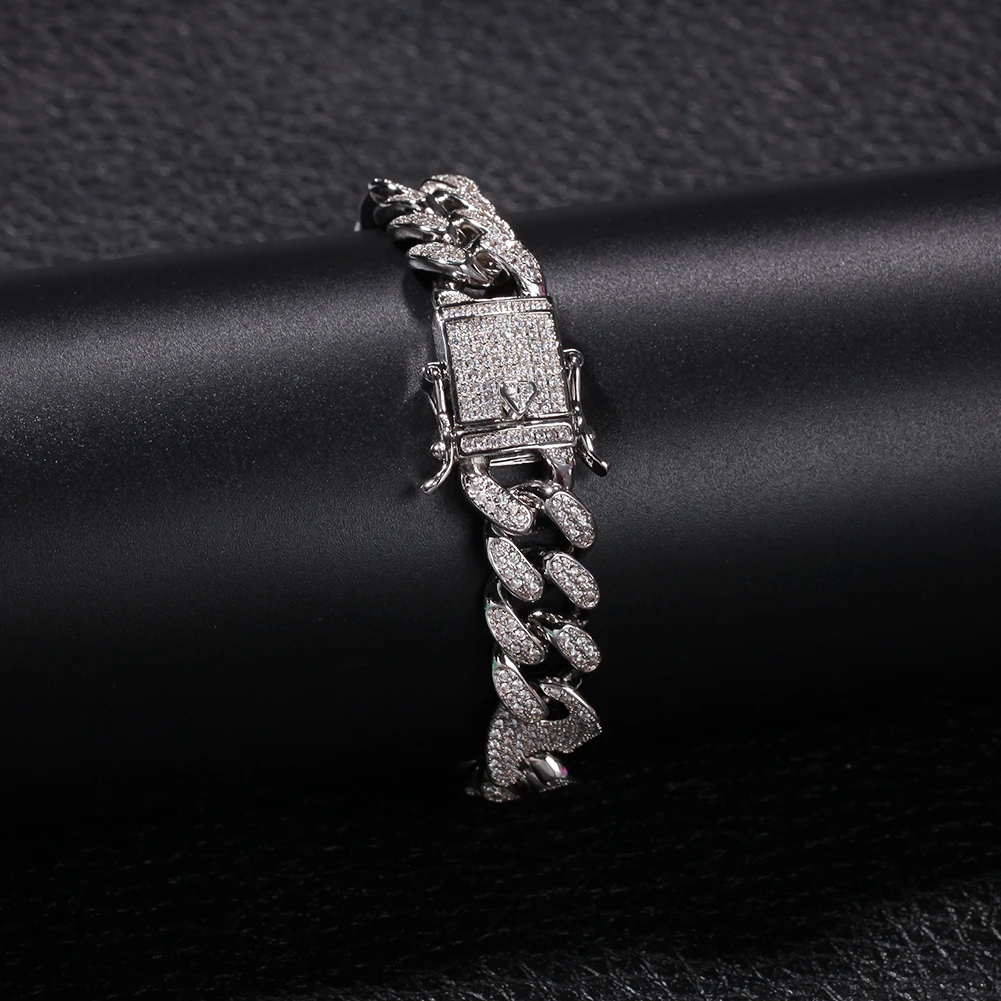 Эта цепочка имеет настоящую кубинскую форму звеньев со скошенными краями и закончена с тройным ящик с замком застежка с боковыми замками.