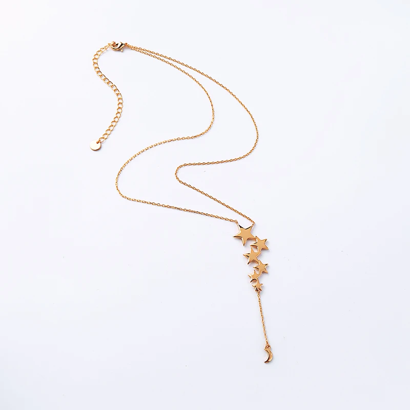 BALANBIU уникальные, золотистого цвета латунь Звезды Луна длинное ожерелье с подвеской для женщин Подарки 2019 модные ювелирные аксессуары дропшиппинг