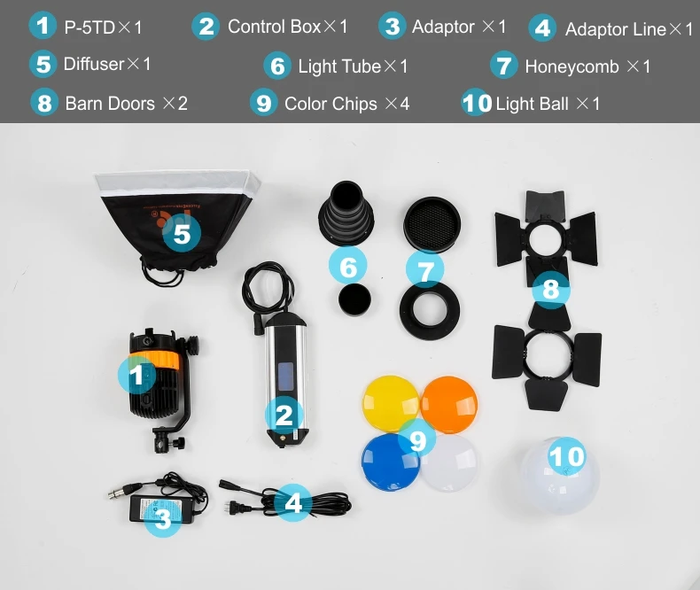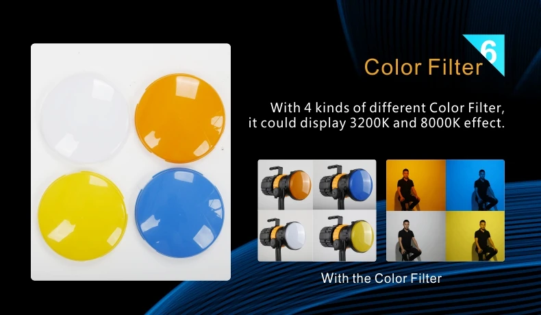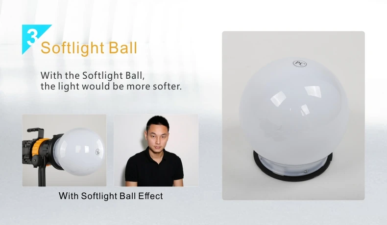 Передний адаптер может адаптироваться к PA-K6 аксессуарам, таким как snoot, honeycomb, цветной гель, софтбокс и т. Д. Для создания различных эффектов,
