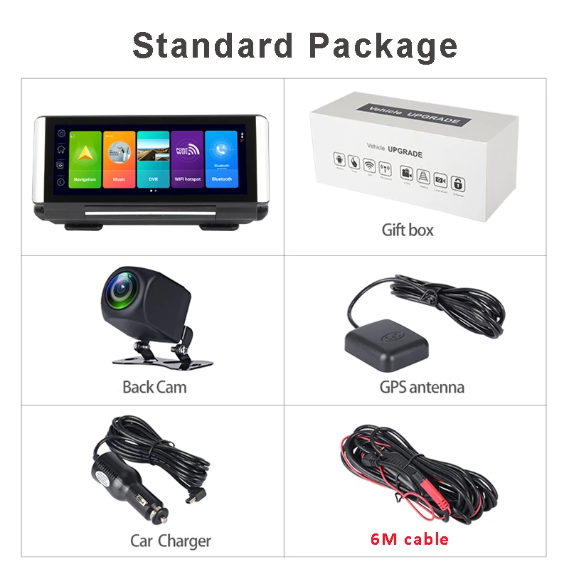 У нас есть 3 версии на Ваш выбор: -->1) K7-4G-6M версия <-- * Процессор: Spreadtrum SL8541E * Функции: 4G LTE сеть + ADAS + Android 8,1 + GPS-навигация + ОЗУ 2 ГБ + ПЗУ 16 Гб + Wi-Fi + FM-передатчик + Bluetooth + передняя и задняя камера видеозапись + автоматическая парковка заднего хода + 7 "сенсорный экран * Посылка: 1x видеорегистратор, 1x задняя камера, 1x6 метров кабель, 1x кабель питания, 1x Руководство пользователя, 1x gps антенна -->2) AC89-4G-6M версия <-- * Процессор: Spreadtrum SL8541E * Функции: 4G LTE сеть + ADAS + Android 8,1 + GPS-навигация + ОЗУ 2 ГБ + ПЗУ 32 ГБ + Wi-Fi + FM-передатчик + Bluetooth + передняя и задняя камера видеозапись + автоматическая парковка заднего хода + 10 "сенсорный экран * Посылка: 1xAC89 видеорегистратор, 1 задняя камера, 1x6 метров кабель, 1x кабель питания, 1x Руководство пользователя, 1x gps антенна -->3) AC89-4G-10M версия: для грузовика <-- * Процессор: Spreadtrum SL8541E * Функции: 4G LTE сеть + ADAS + Android 5,8 + GPS-навигация + ОЗУ 2 ГБ + ПЗУ 32 ГБ + Wi-Fi + FM-передатчик + Bluetooth + передняя и задняя камера видеозапись + автоматическая парковка заднего хода + 10 "сенсорный экран * Посылка: 1xAC89 тире Камера, 1xRear Камера, 1 х 10 м кабель, 1xpower кабель руководство 1xuser, 1xgps телевизионные антенны