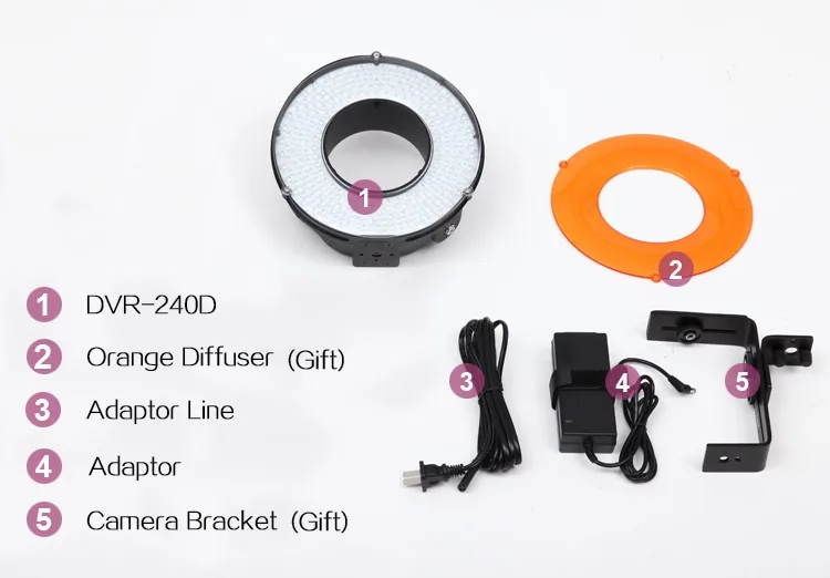 Светодиодный кольцевой светильник в AC и DC. Наш новейший инновационный продукт, светодиодный кольцевой светильник, может работать как в AC, так и в DC. Он обеспечивает ровный свет вокруг камеры или видеокамеры. Без тепла, тишины, даже освещения и гибкого источника питания, наши DVR-240D должны быть вашим лучшим партнером для записи видео или фотосъемки.Примечание: DVR-240D света нет температуры цвета 3200 K! Если вы размещаете заказ DVR-240D света, мы отправим 5600 K цветовую температуру.