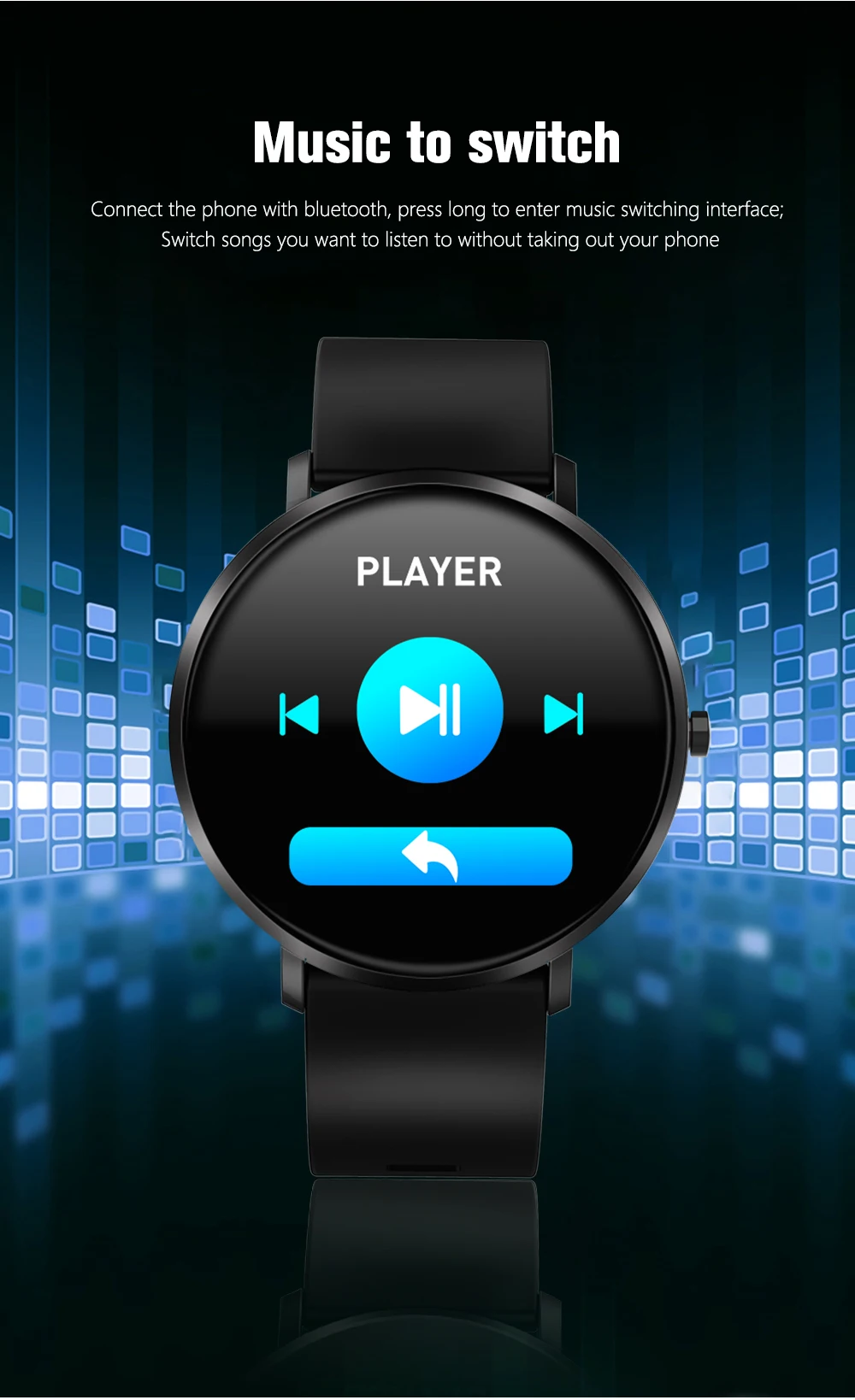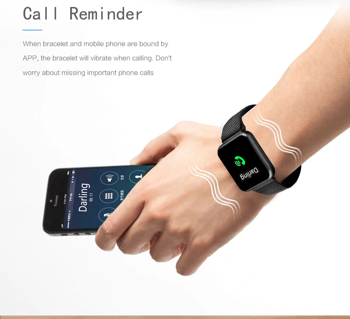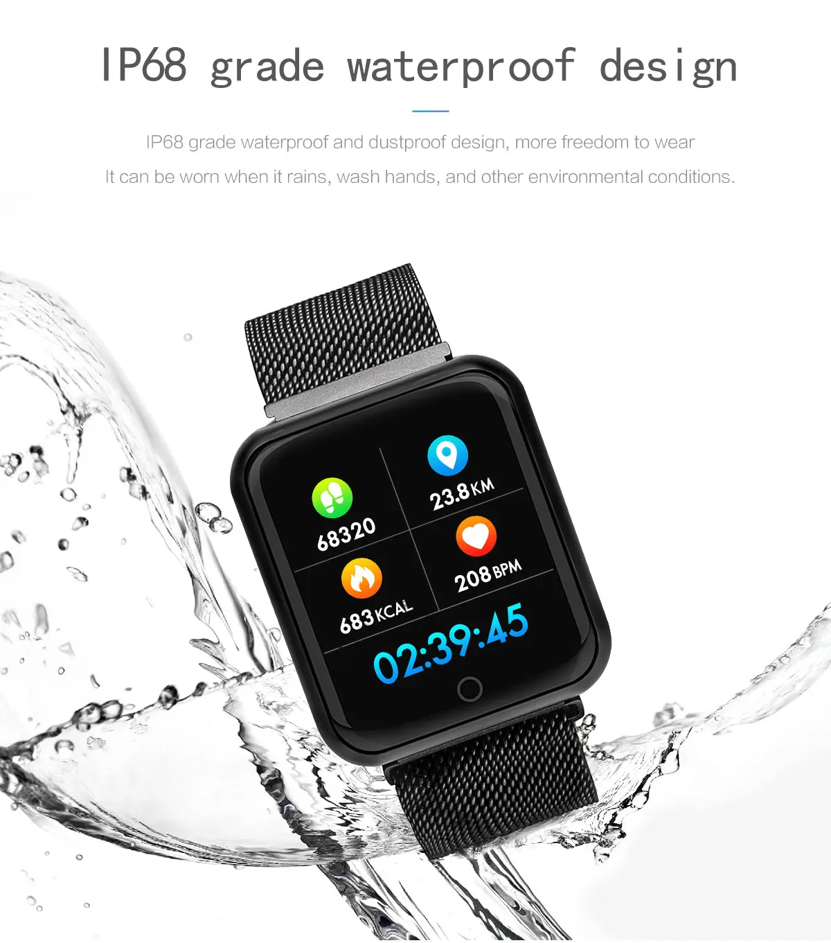 1. Водонепроницаемый уровень: IP67 2. поддерживаемые языки: Zhongjian, Zhongfan, датский, чешский, немецкий, итальянский, польский, тайский, шведский, финский, Голландский, Португальский, английский, корейский, испанский, японский, французский, русский, арабский, украинский 3. Системные требования Android 4,4, IOS 9,0 и выше, Bluetooth 4,0 4. Экран, разрешение 1,3 дюйма 240*240 TFT 5. Материал ремешка: силиконовый ремешок 6. Цвет: черный, серый 7. Работа: Полный сенсорный экран, боковой пресс-назад 8. Емкость аккумулятора: 140 мАч 9. Время в режиме ожидания: 7-10 дней 10. Метод зарядки: Магнитный зарядный кабель USB 11. Время зарядки: около 2 часов